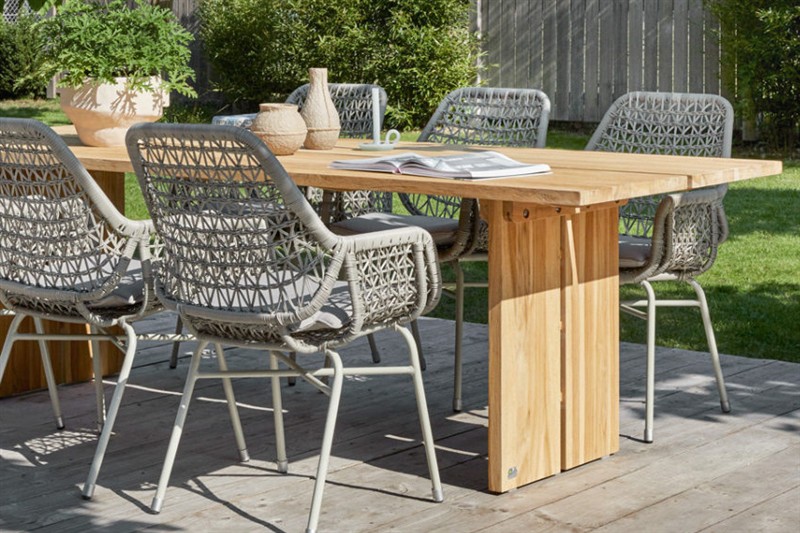 Jídelní zahradní křeslo z umělého ratanu s odlehčeným designem.