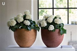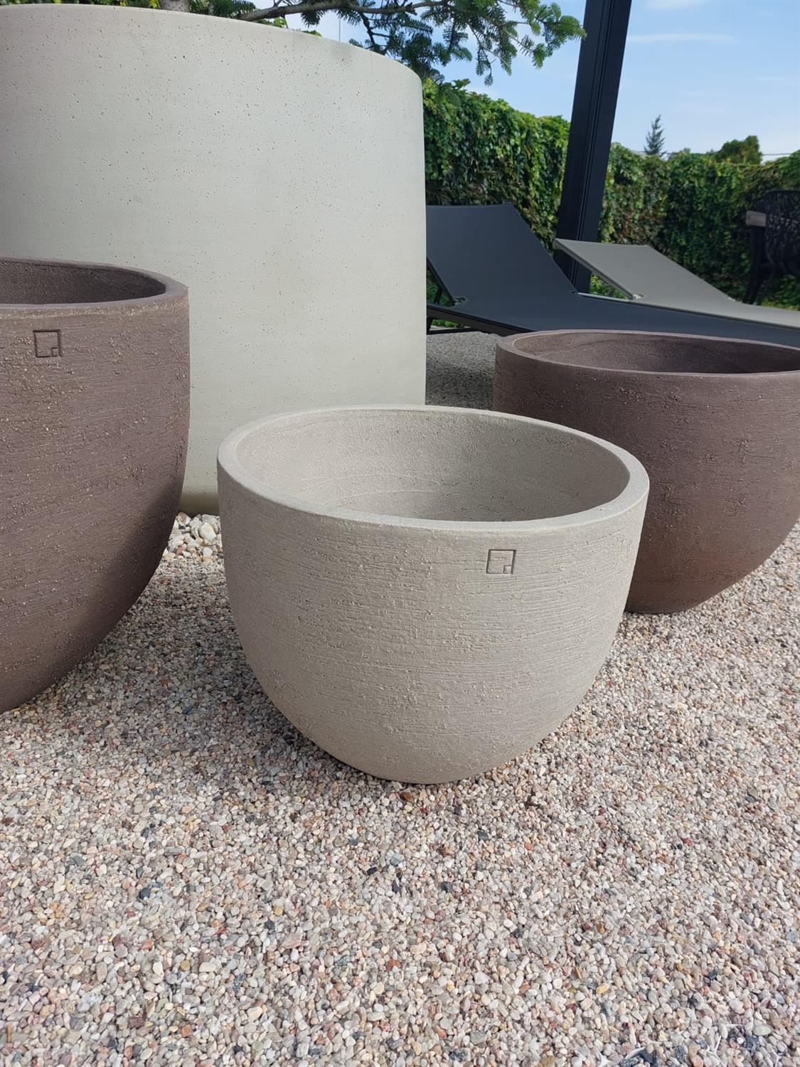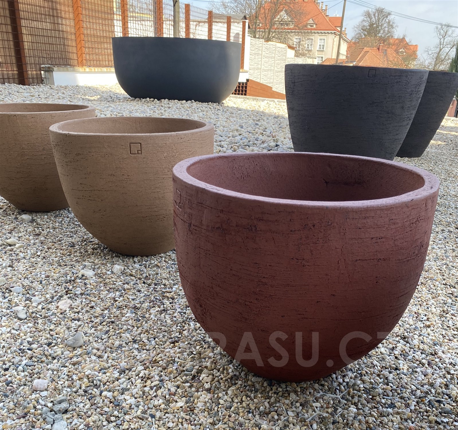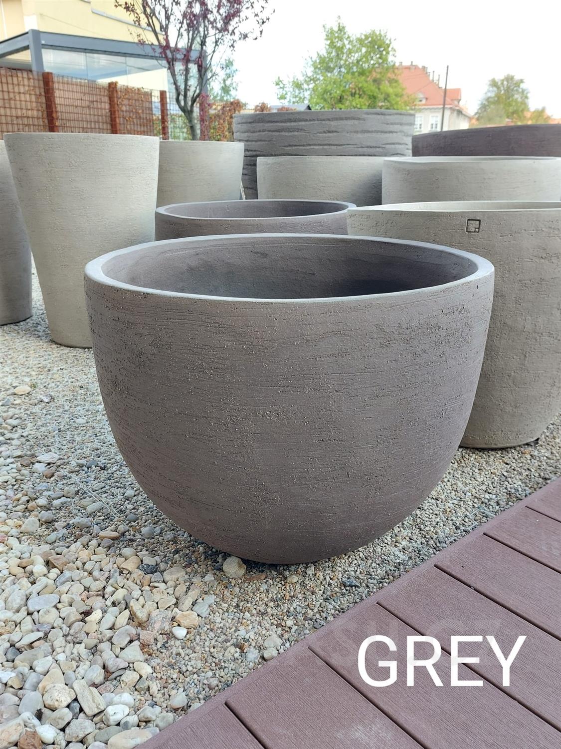 Kulaté klasické květináče ve tvaru mísy, pro každou terasu.
