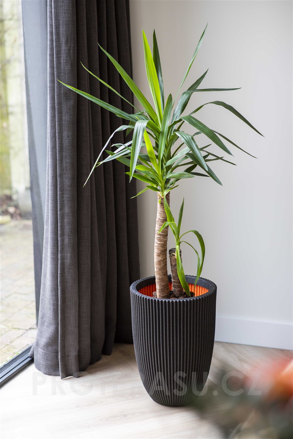 Oranžový vnitřek je odkazem na jejich původ, ale zároveň je izolační vrstvou, která chrání rostliny před horkem v létě a chladem v zimě. Díky této dodatečné vrstvě jsou květináče také mimořádně pevné, takže jsou odolné proti popraskání.