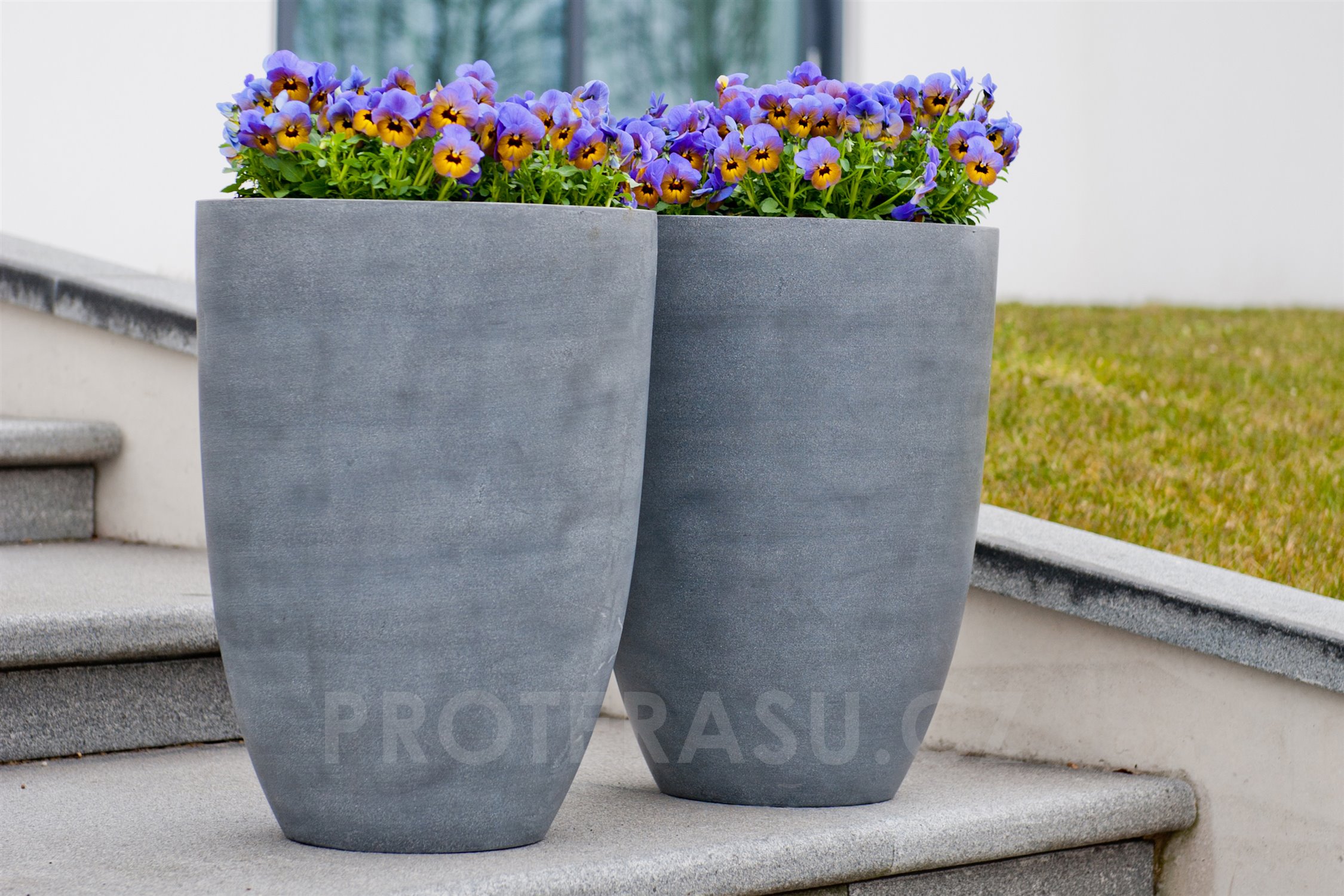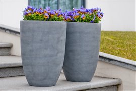 Venkovní kulaté květináče Ben jsou dostupné ve výšce 55 a 72 cm. Jsou vyrobené z kompozitu Ficonstone v různých povrchových úpravách.