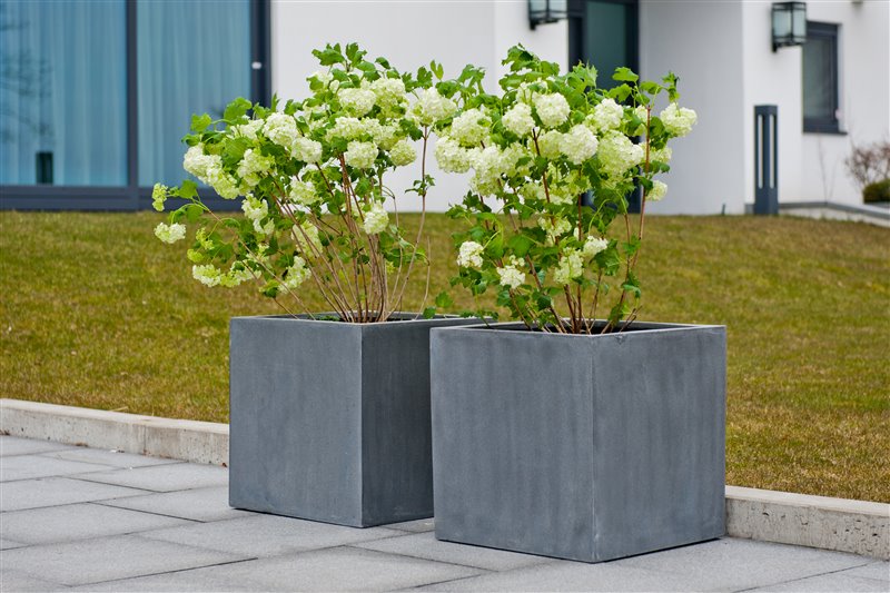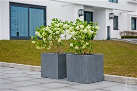 Čtvercové venkovní květináče Block jsou dostupné ve výškách 40, 50, 60 a 70 cm. Jsou vyrobené z kompozitního materiálu Fiberstone v různých povrchových úpravách a barvách.