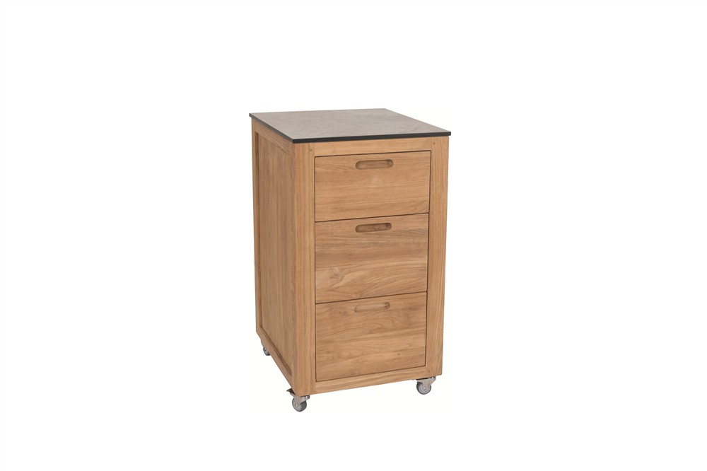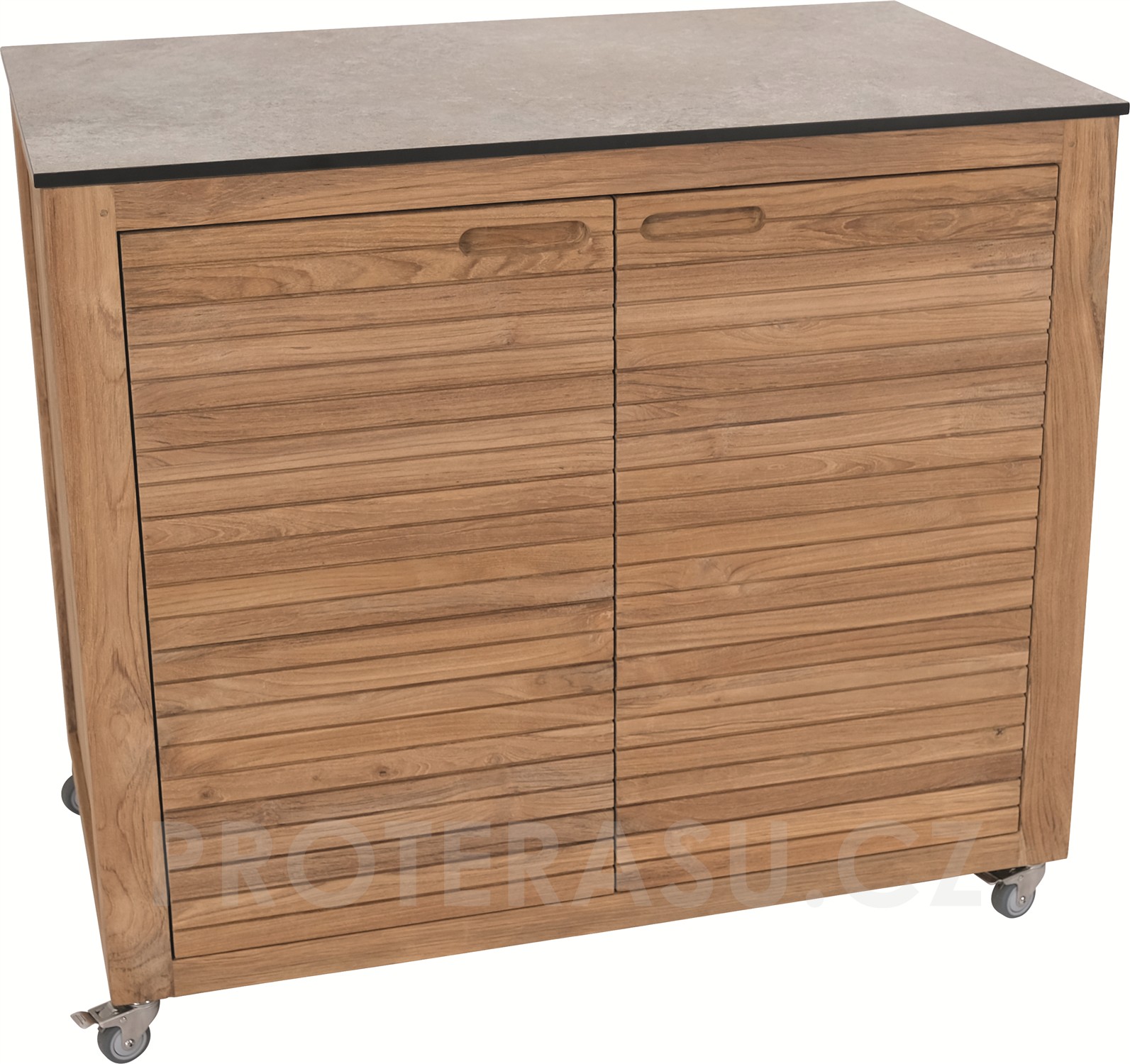 Venkovní skříň - příborník s kolečky Elma, Stern, 100x58x88 cm, rám teak, deska HPL, quartz