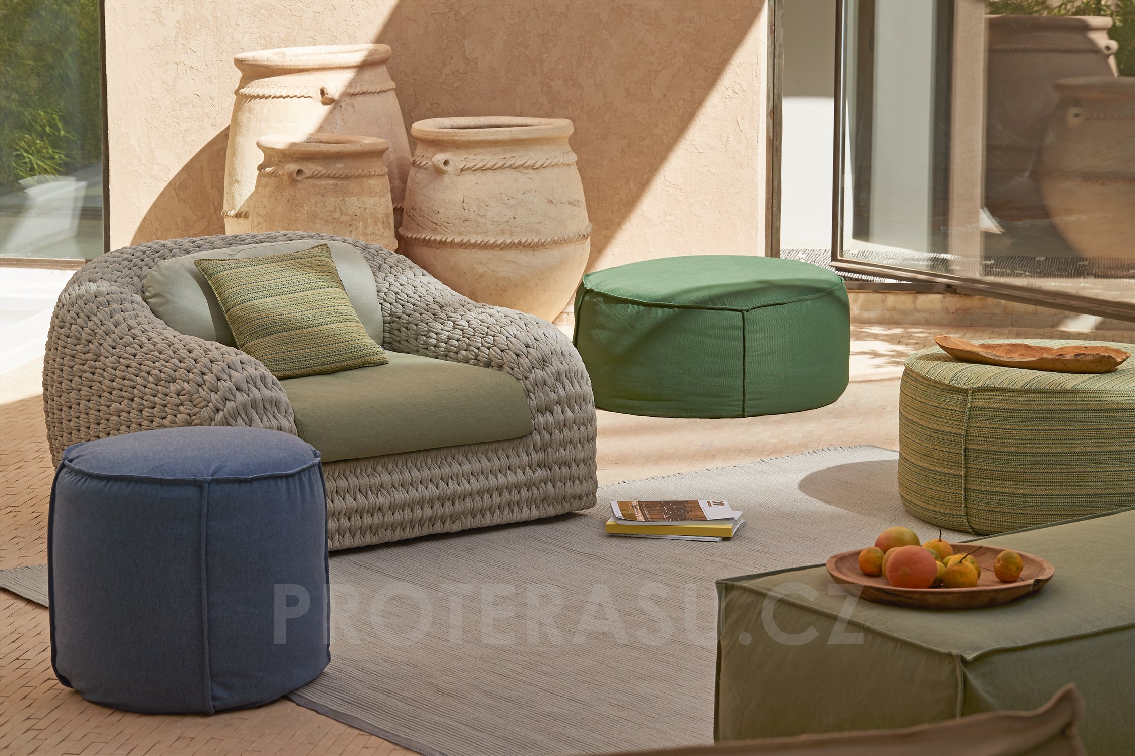 Exklusivní venkovní koberce belgické značky Manutti odolají i extrémním povětrnostním podmínkám. Jsou ručně tkané a k dispozici ve dvou barevných variantách. Kratší strana je vždy zakončena bordurou.
