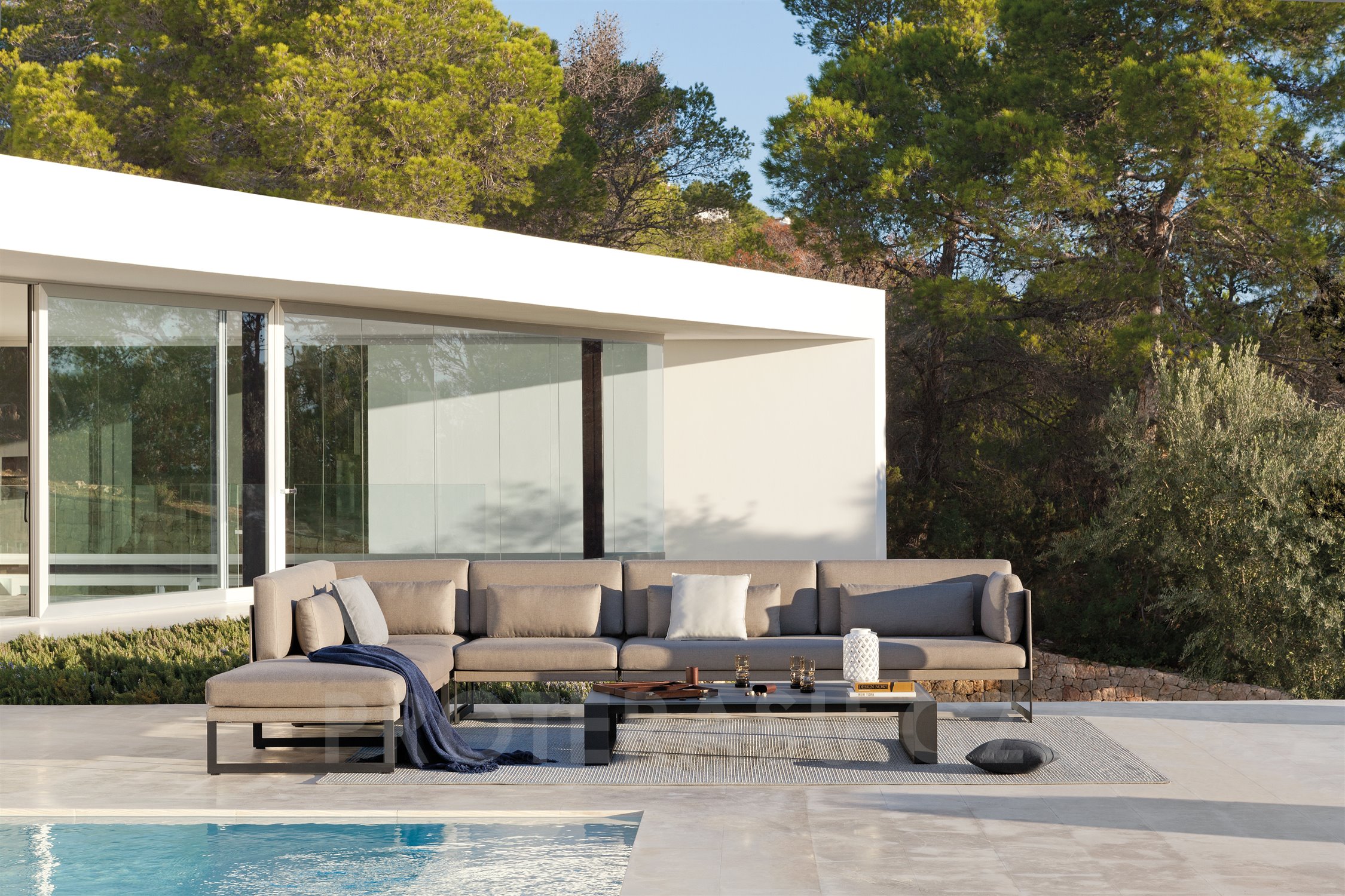 Exklusivní venkovní koberec Linear belgické značky Manutti odolá i extrémním povětrnostním podmínkám. Je ručně tkaný a k dispozici ve dvou barevných variantách. Kratší strana je vždy zakončena bordurou.
