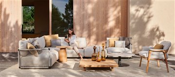 Venkovní koberec Loft od Tribu tkaný z potahovaného polyesteru. V nabídce ve 3 různých barvách.