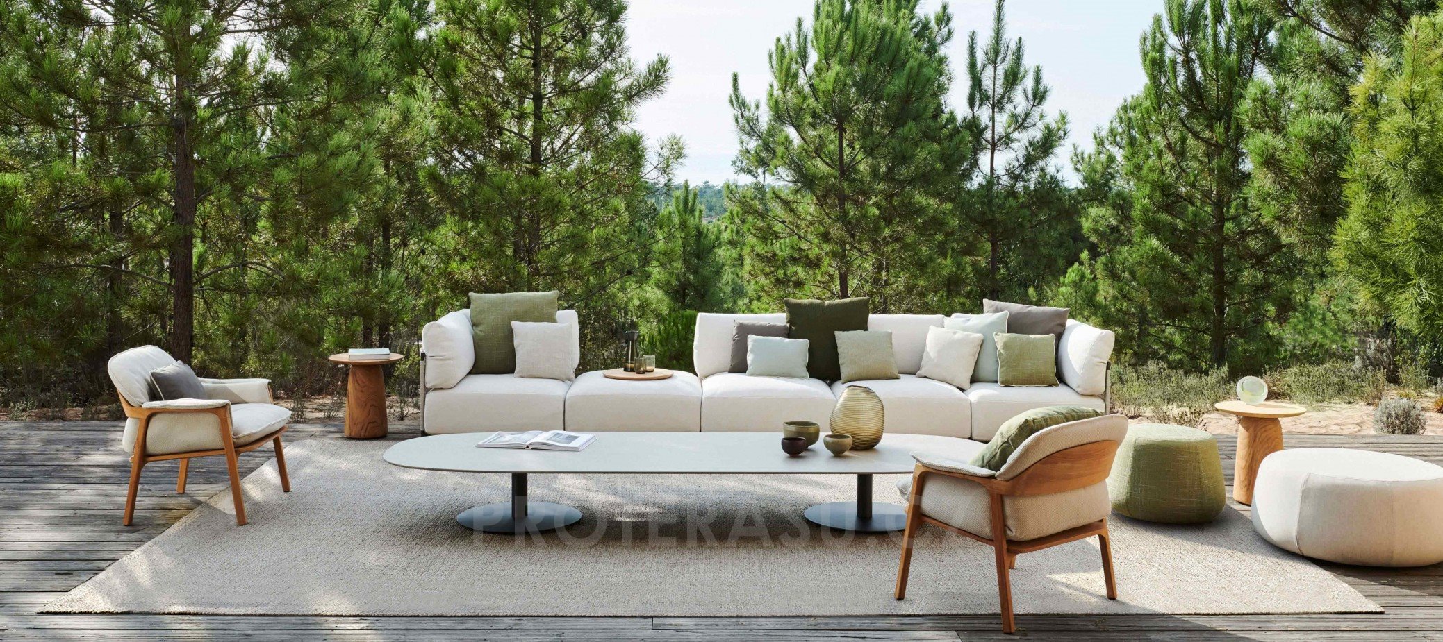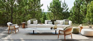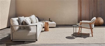 Venkovní koberec Loft od Tribu tkaný z potahovaného polyesteru. V různých barvách.