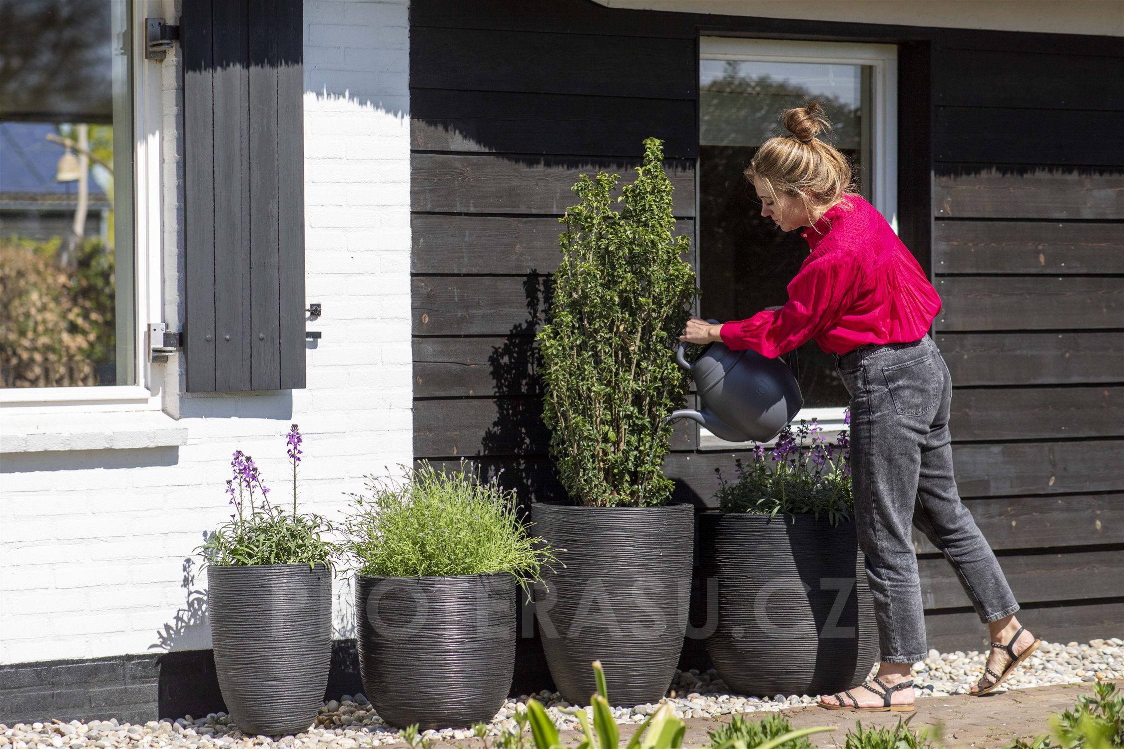 Květináč kulatý Rib, Ø51x72 cm, barva antracit