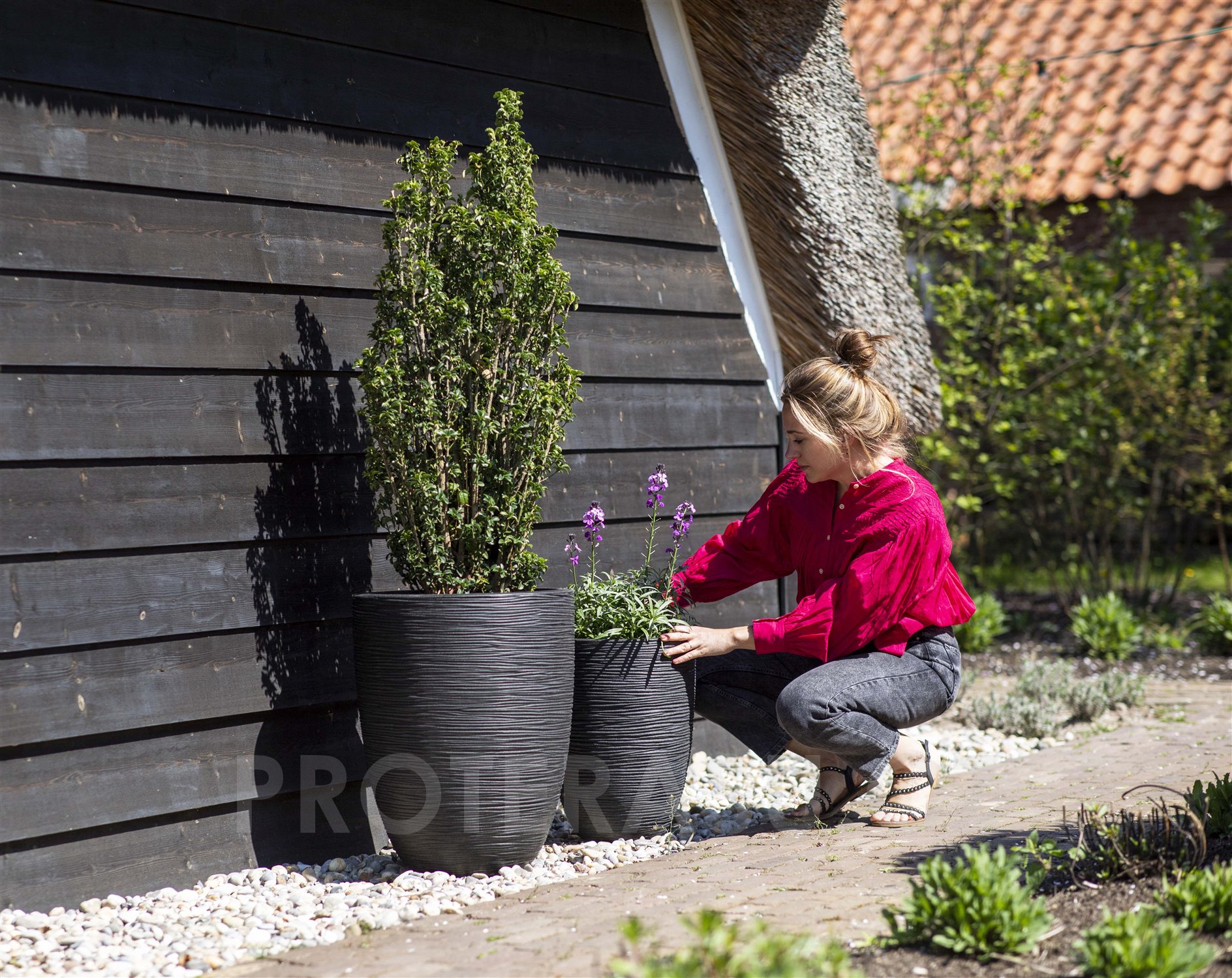 Květináč kulatý Rib, Ø38x58 cm, barva antracit