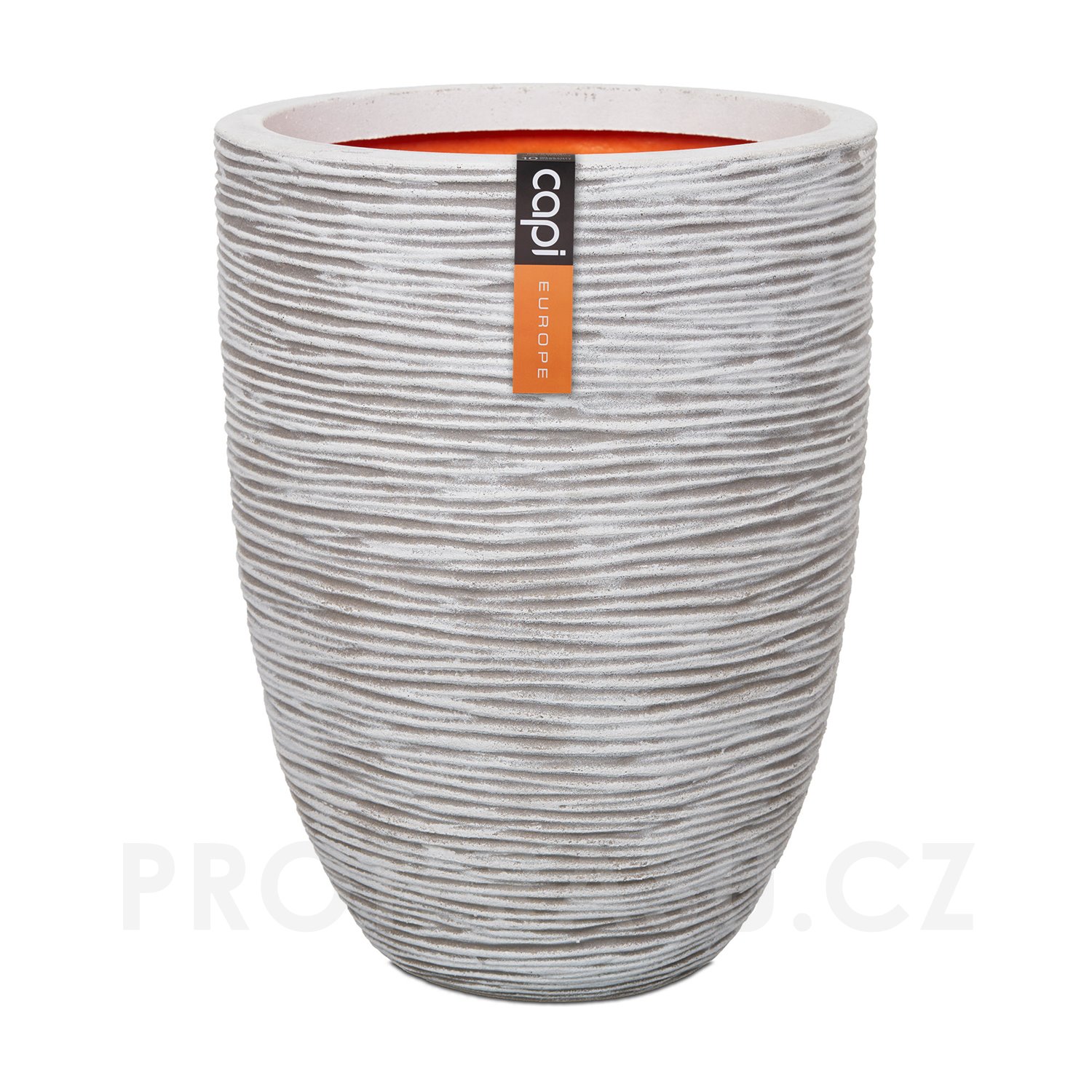 Květináč kulatý Rib NL, Capi, průměr 34 cm, výška 46 cm, recyklovatelná PE směs, barva ivory