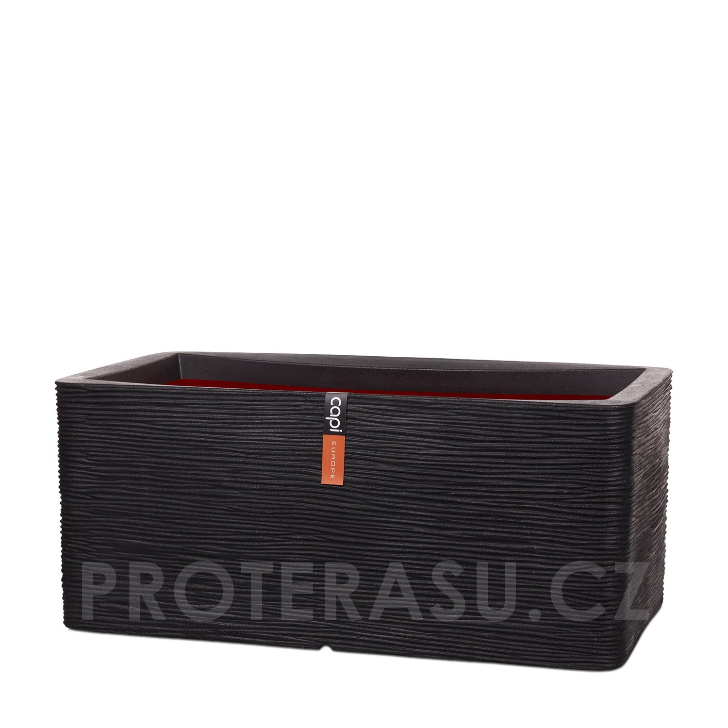 Květináč obdélníkový Rib NL, Capi, 73x39x32 cm, recyklovatelná PE směs, barva black