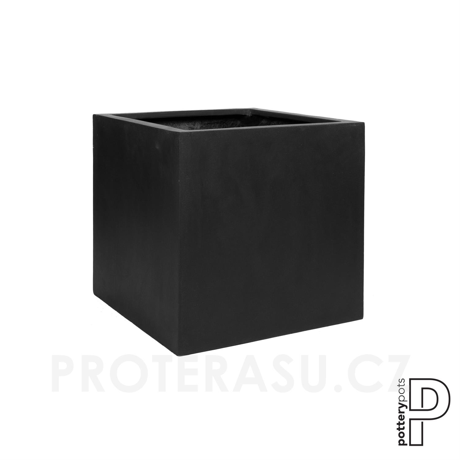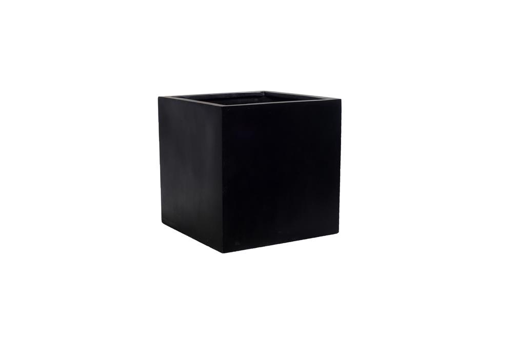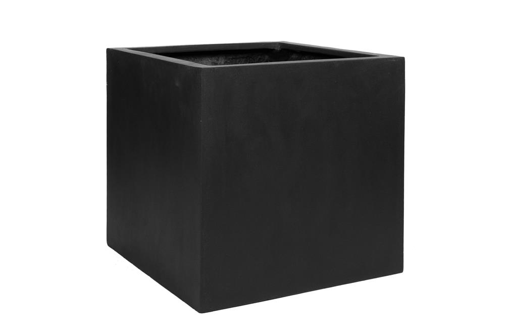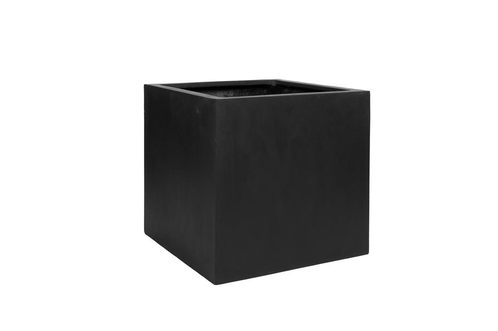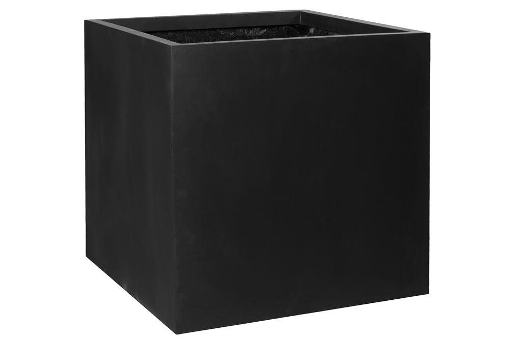 Venkovní květináč čtvercový Block L, Black (barva černá), kolekce Natural, kompozit Fiberstone, d 50 cm x š 50 cm x v 50 cm, objem cca 121 l