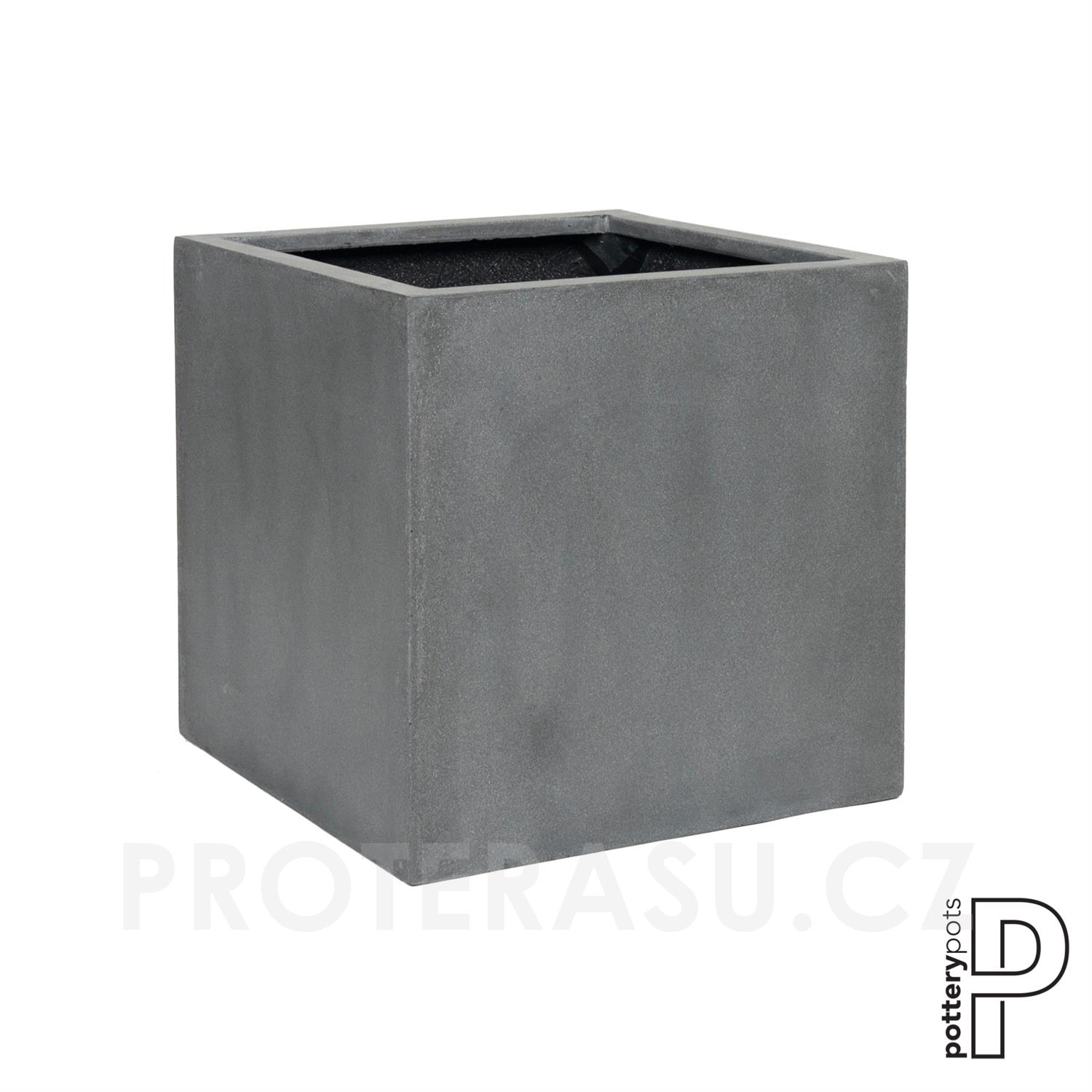 Venkovní květináč čtvercový Block XL, Grey (barva šedá), kolekce Natural, kompozit Fiberstone, d 60 cm x š 60 cm x v 60 cm, objem cca 210 l