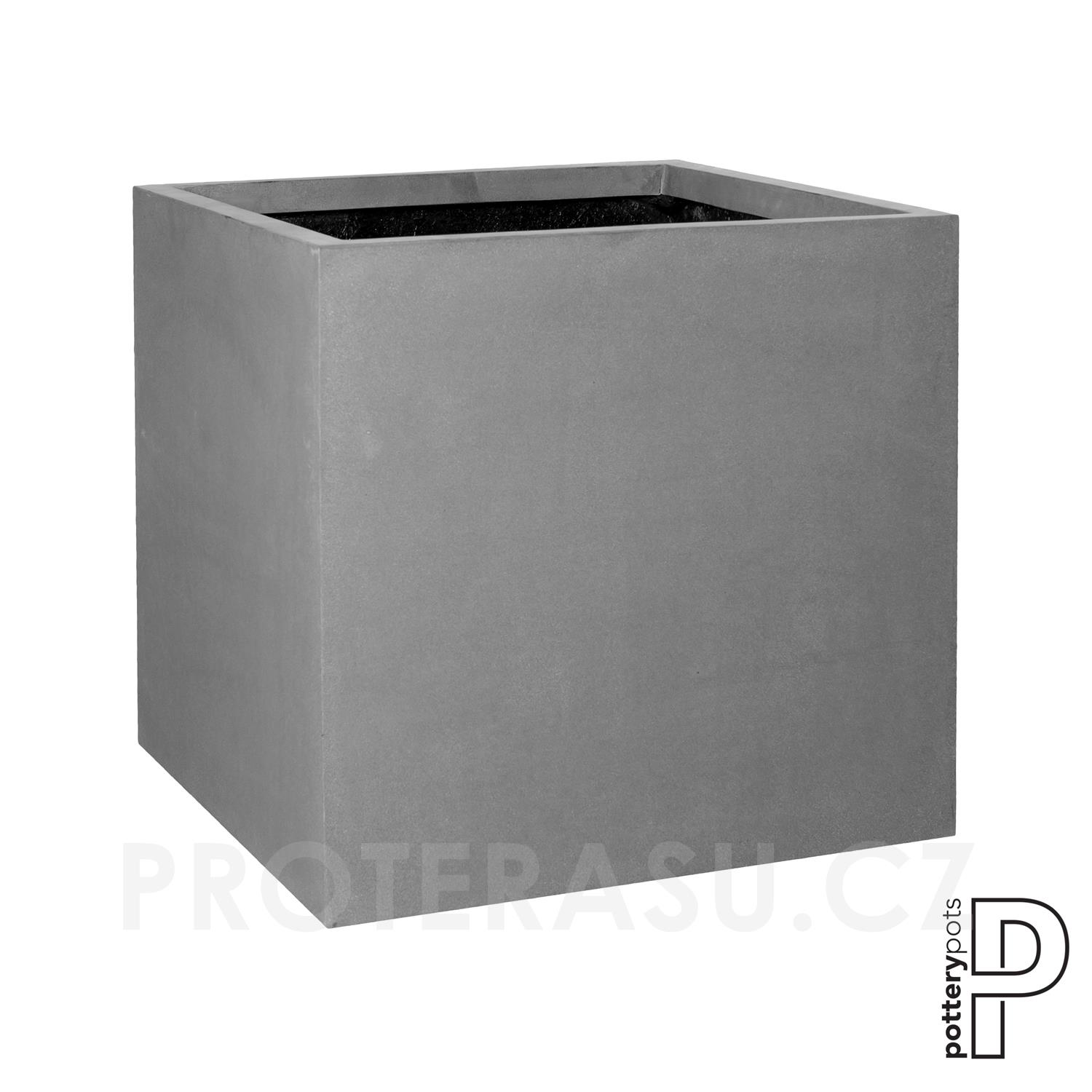 Venkovní květináč čtvercový Block XXL, Grey (barva šedá), kolekce Natural, kompozit Fiberstone, d 70 cm x š 70 cm x v 70 cm, objem cca 343 l