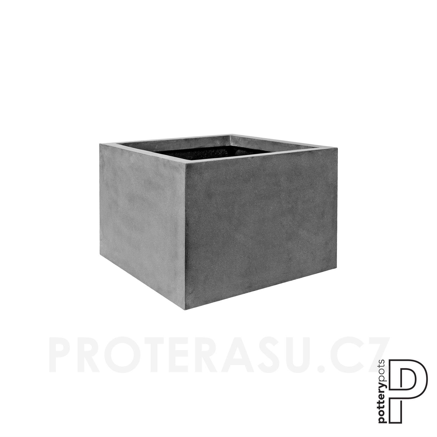 Venkovní květináč čtvercový Jumbo middle high M, Grey (barva šedá), kolekce Natural, kompozit Fiberstone, d 70 cm x š 70 cm x v 53 cm, objem cca 235 l