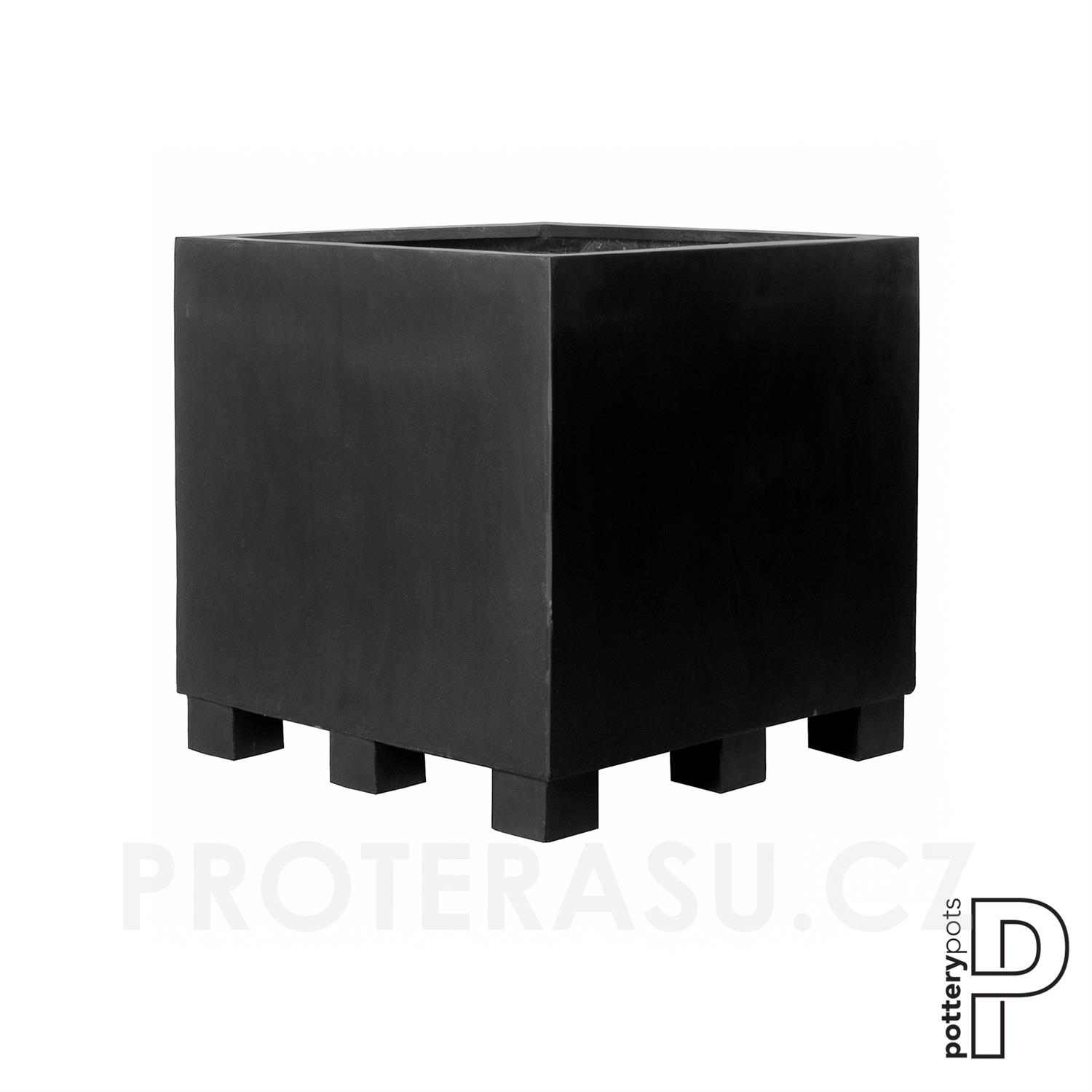 Venkovní květináč čtvercový Jumbo XL (feet), Black (barva černá), kolekce Natural, kompozit Fiberstone, d 110 cm x š 110 cm x v 100 cm, objem cca 1089 l