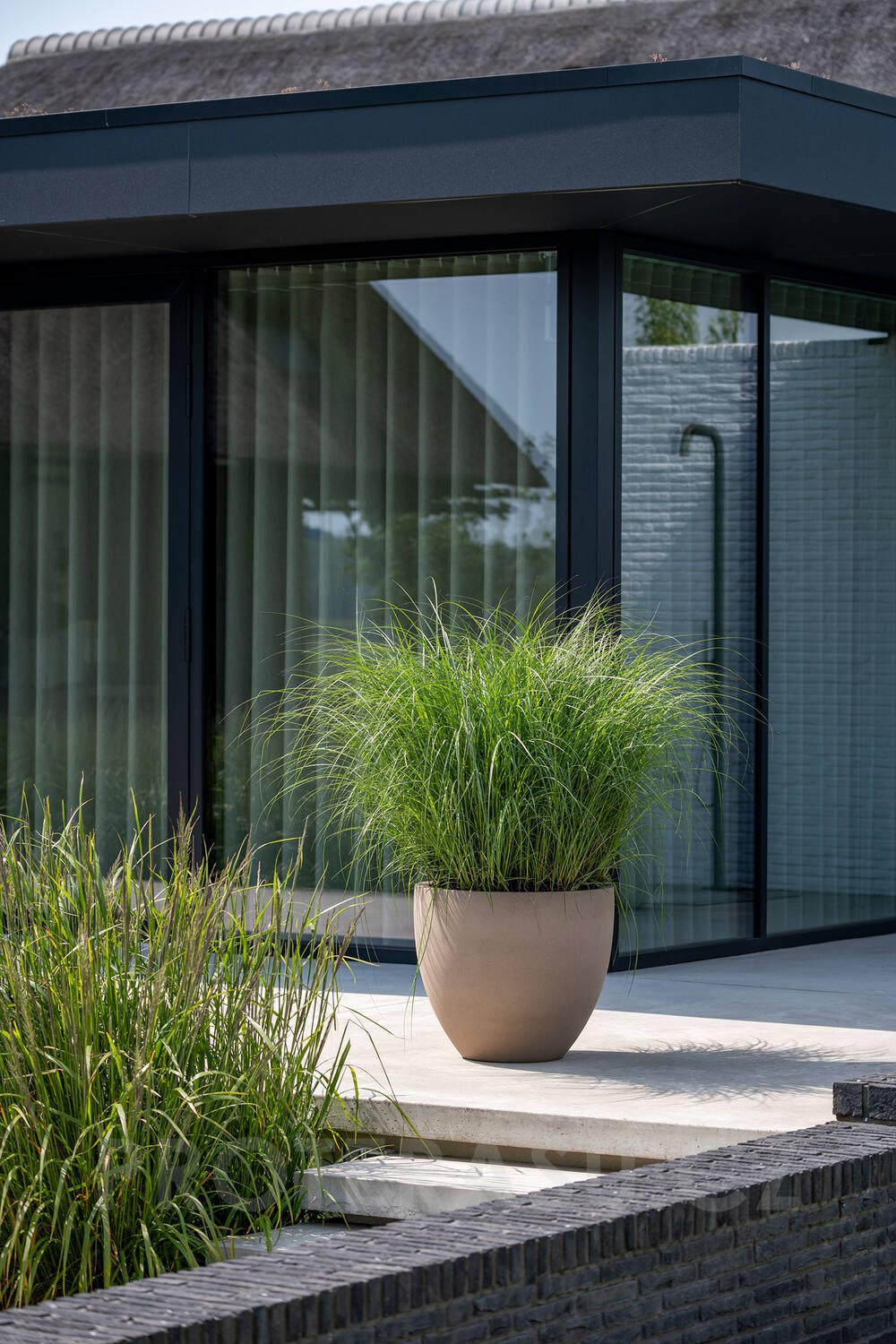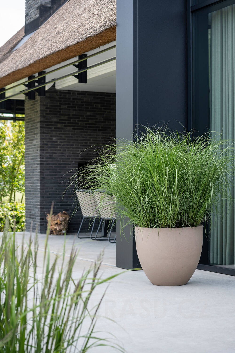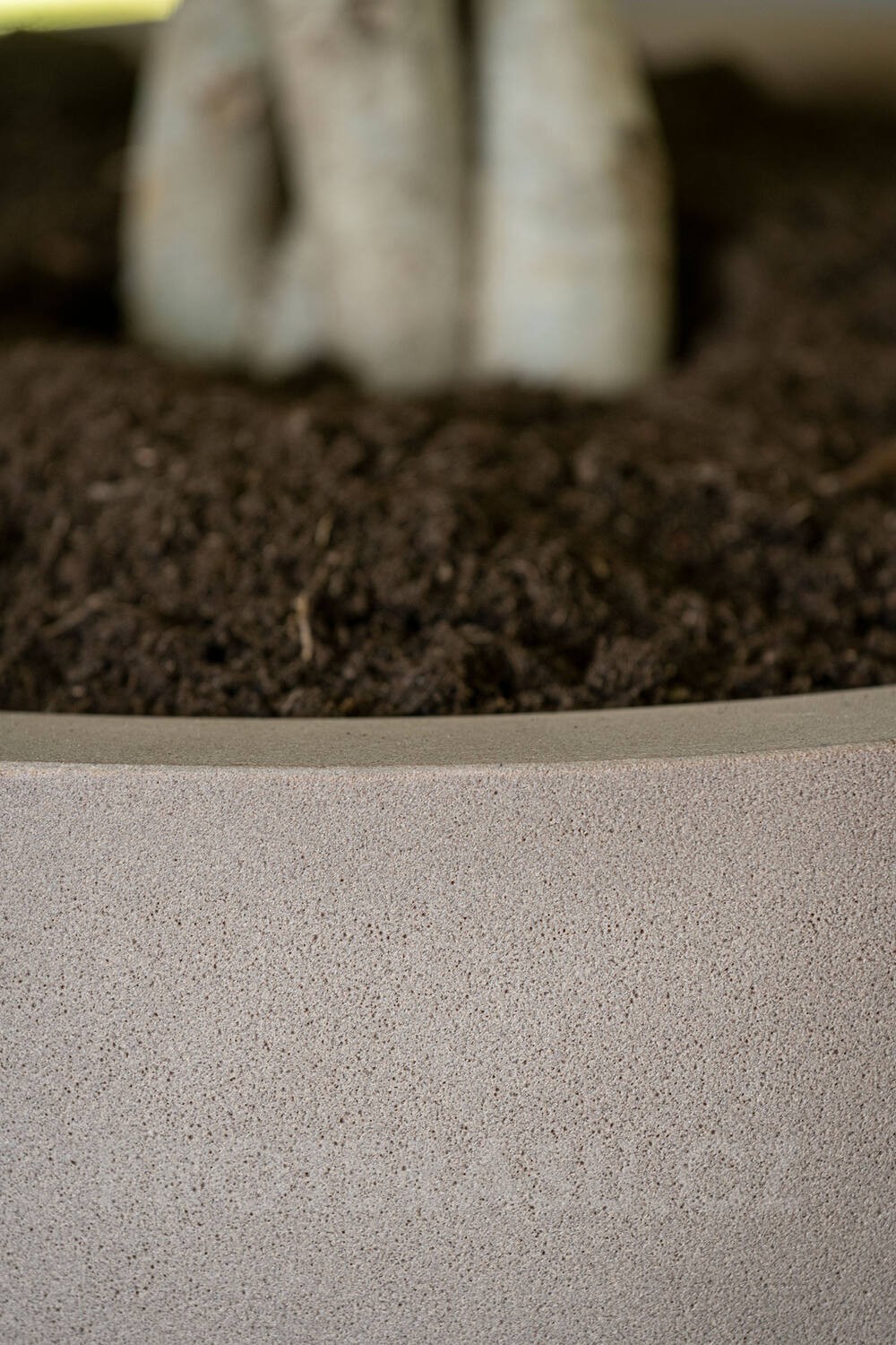 Venkovní květináč kulatý Jesslyn L, Taupe (barva béžová taupe), kolekce Natural, kompozit Fiberstone, průměr 70 cm x v 61 cm, objem cca 172 l