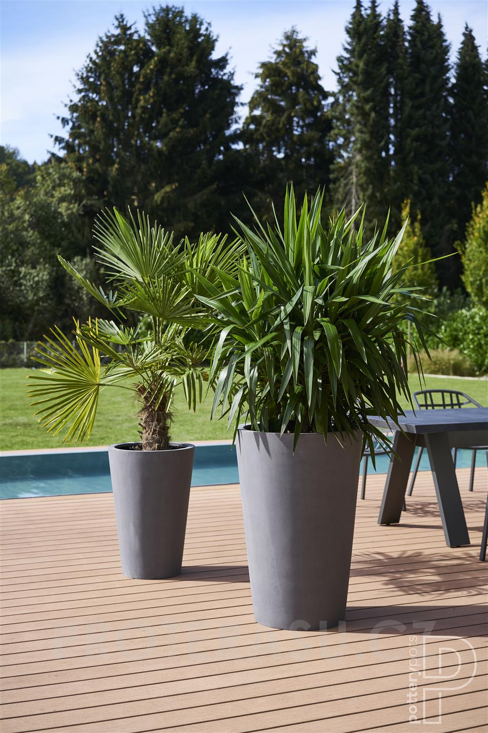 Venkovní květináč kulatý Belle L, Grey (barva šedá), kolekce Natural, kompozit Fiberstone, průměr 60 cm x v 90 cm, objem cca 183 l