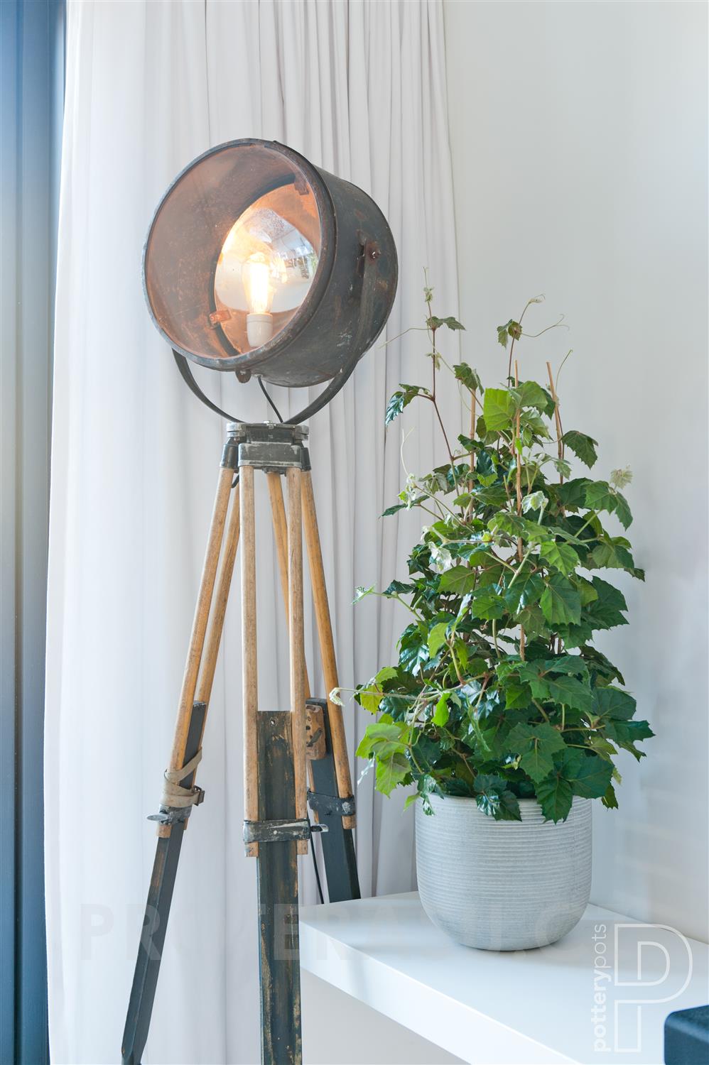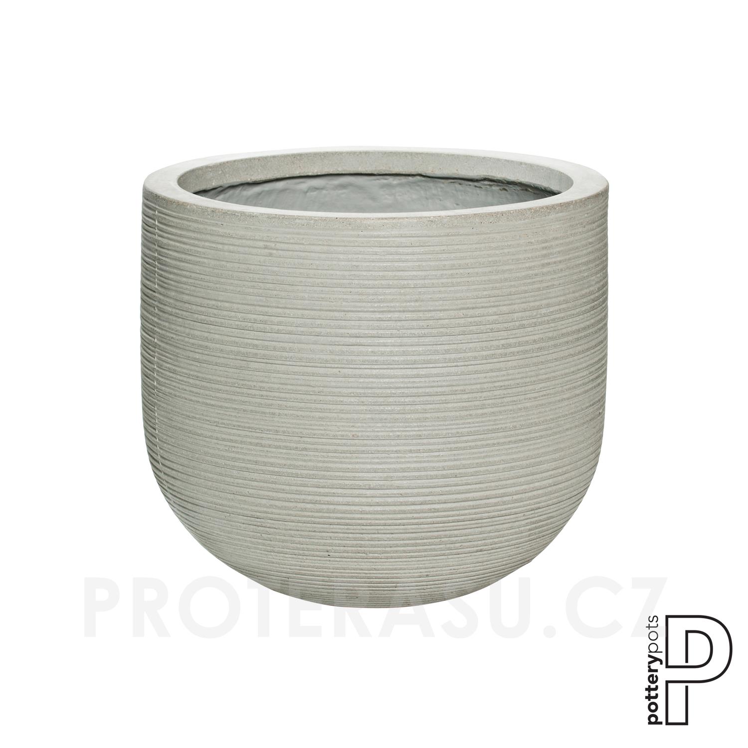 Venkovní květináč kulatý Cody M, Light Grey (barva světlešedá, vodorovné pruhy), kolekce Ridged, materiál Ficonstone, průměr 35 cm x v 31 cm, objem cca 26 l