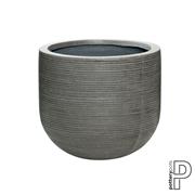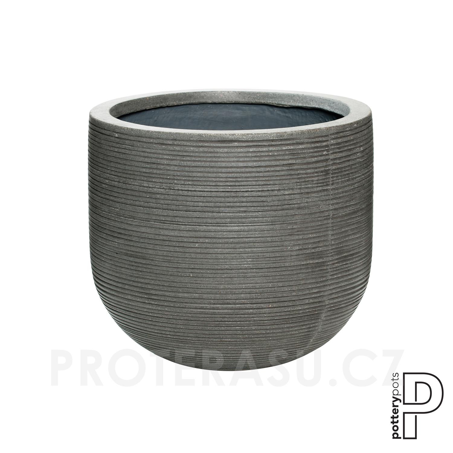Venkovní květináč kulatý Cody M, Dark Grey (barva tmavě šedá, vodorovné pruhy), kolekce Ridged, materiál Ficonstone, průměr 35 cm x v 31 cm, objem cca 26 l