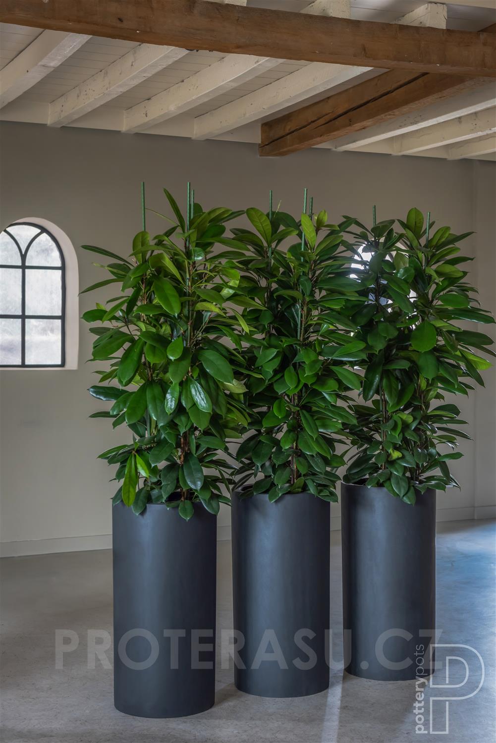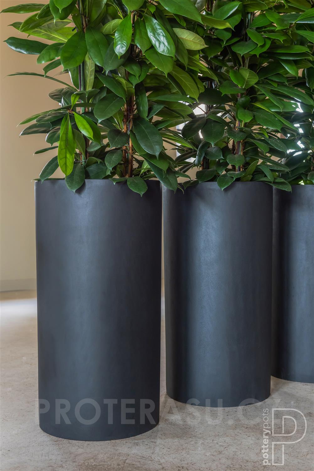 Venkovní květináč kulatý Klax M, Black (barva černá), kolekce Natural, kompozit Fiberstone, průměr 30 cm x v 60 cm, objem cca 42 l