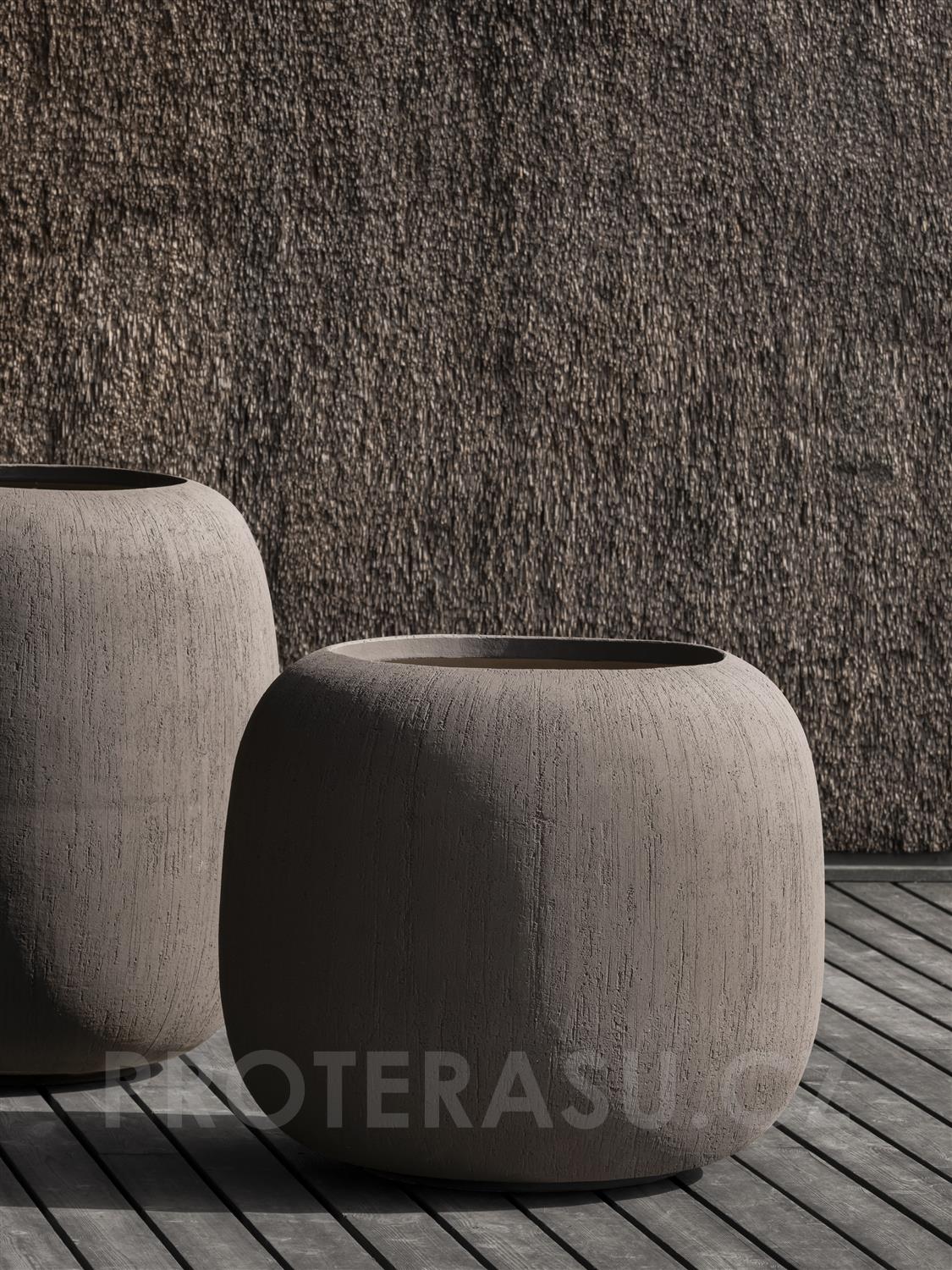 Luxusní venkovní květináč z pálené hlíny/keramiky vyrobený belgickou manufakturou Domani.