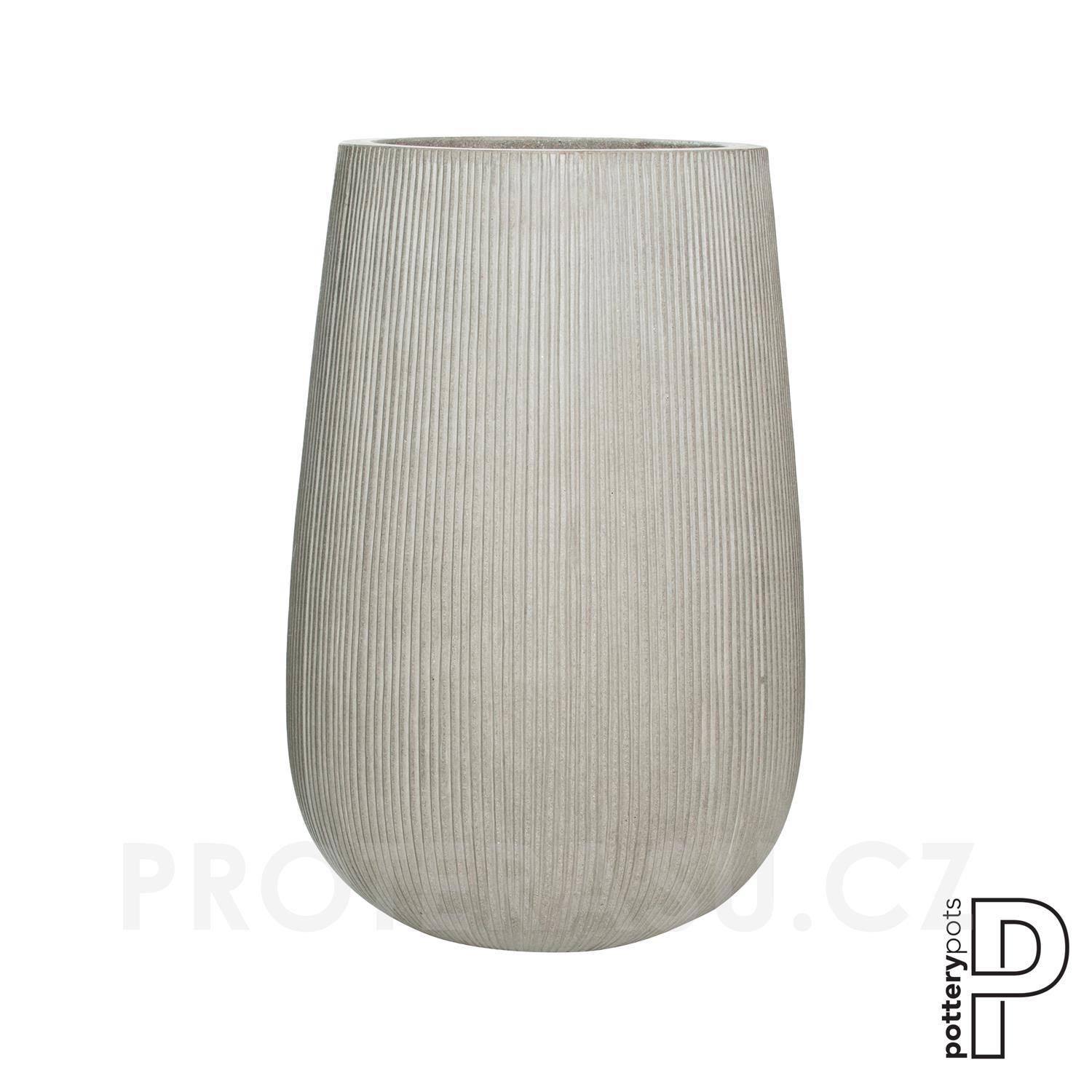 Venkovní květináč kulatý Patt high M, Light Grey (barva světle šedá, svislé pruhy), kolekce Ridged, materiál Ficonstone, průměr 44 cm x v 66 cm, objem cca 83 l