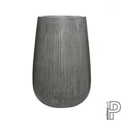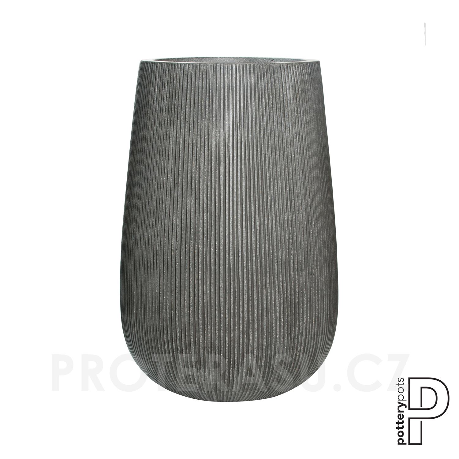 Venkovní květináč kulatý Patt high M, Dark Grey (barva tmavě šedá, svislé pruhy), kolekce Ridged, materiál Ficonstone, průměr 44 cm x v 66 cm, objem cca 83 l