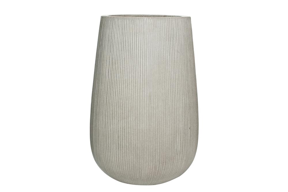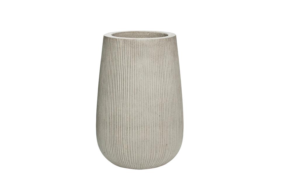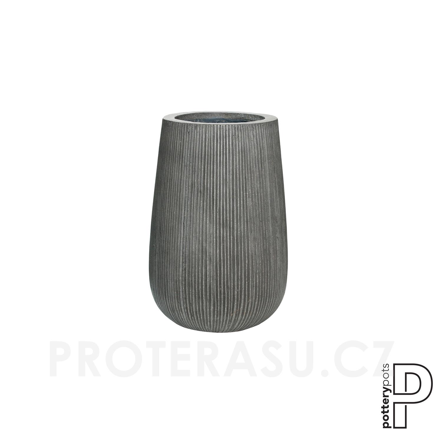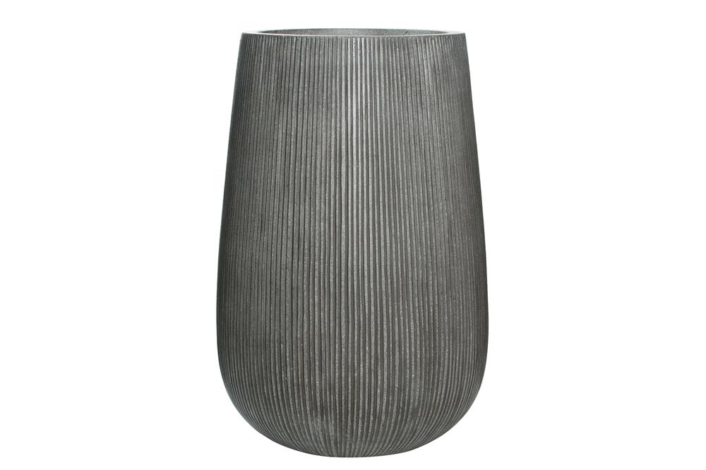 Venkovní květináč kulatý Patt high S, Dark Grey (barva tmavě šedá, svislé pruhy), kolekce Ridged, materiál Ficonstone, průměr 29 cm x v 43 cm, objem cca 24 l