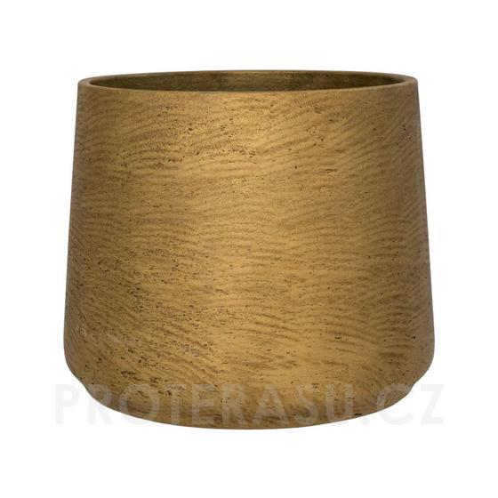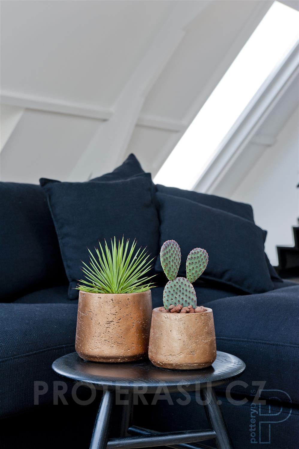 Venkovní květináč kulatý Patt M, Metalic Copper (zlatavá), kolekce Rough, materiál Fiberclay, průměr 16,5 cm x v 14 cm, objem cca 2 l