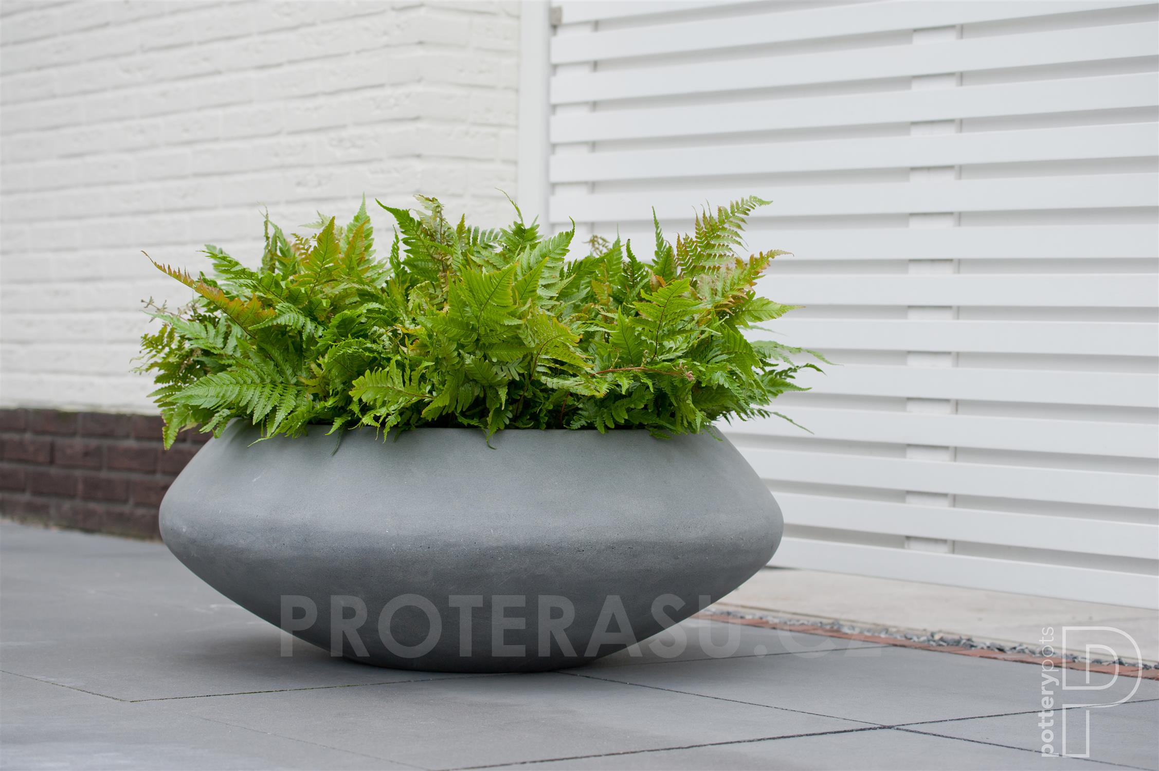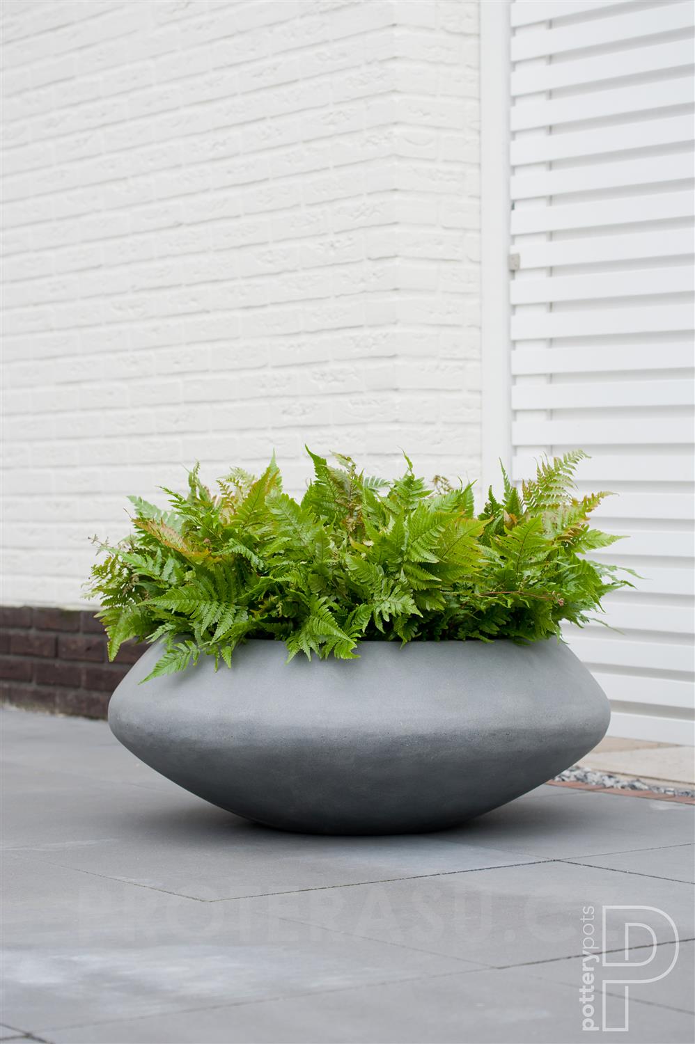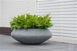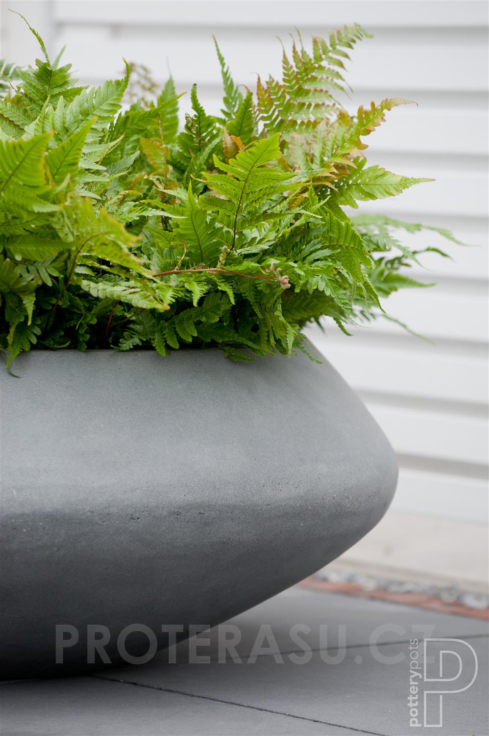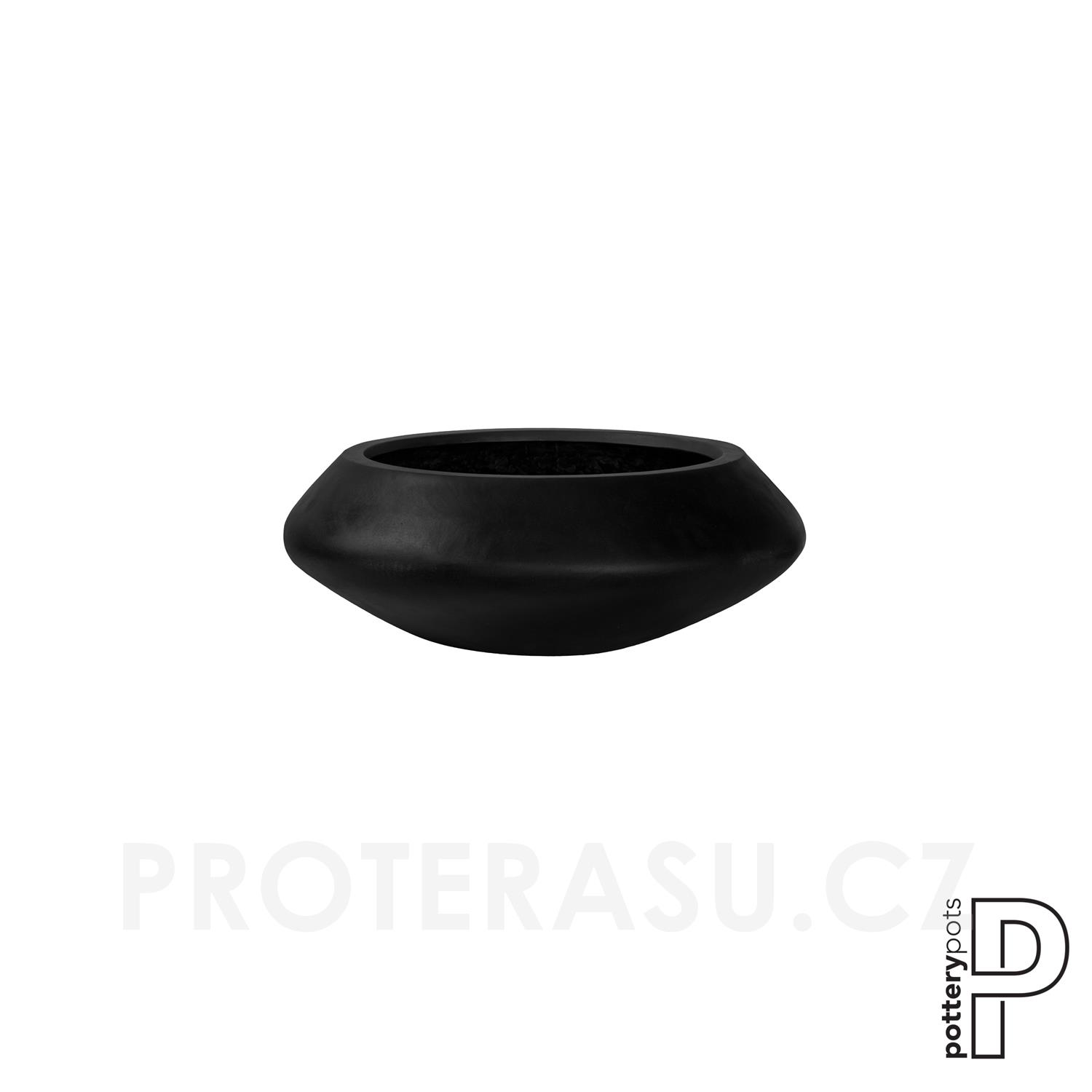 Venkovní květináč kulatý Tara M, Black (barva černá), kolekce Natural, kompozit Fiberstone, průměr 60 cm x v 22,5 cm, objem cca 19 l