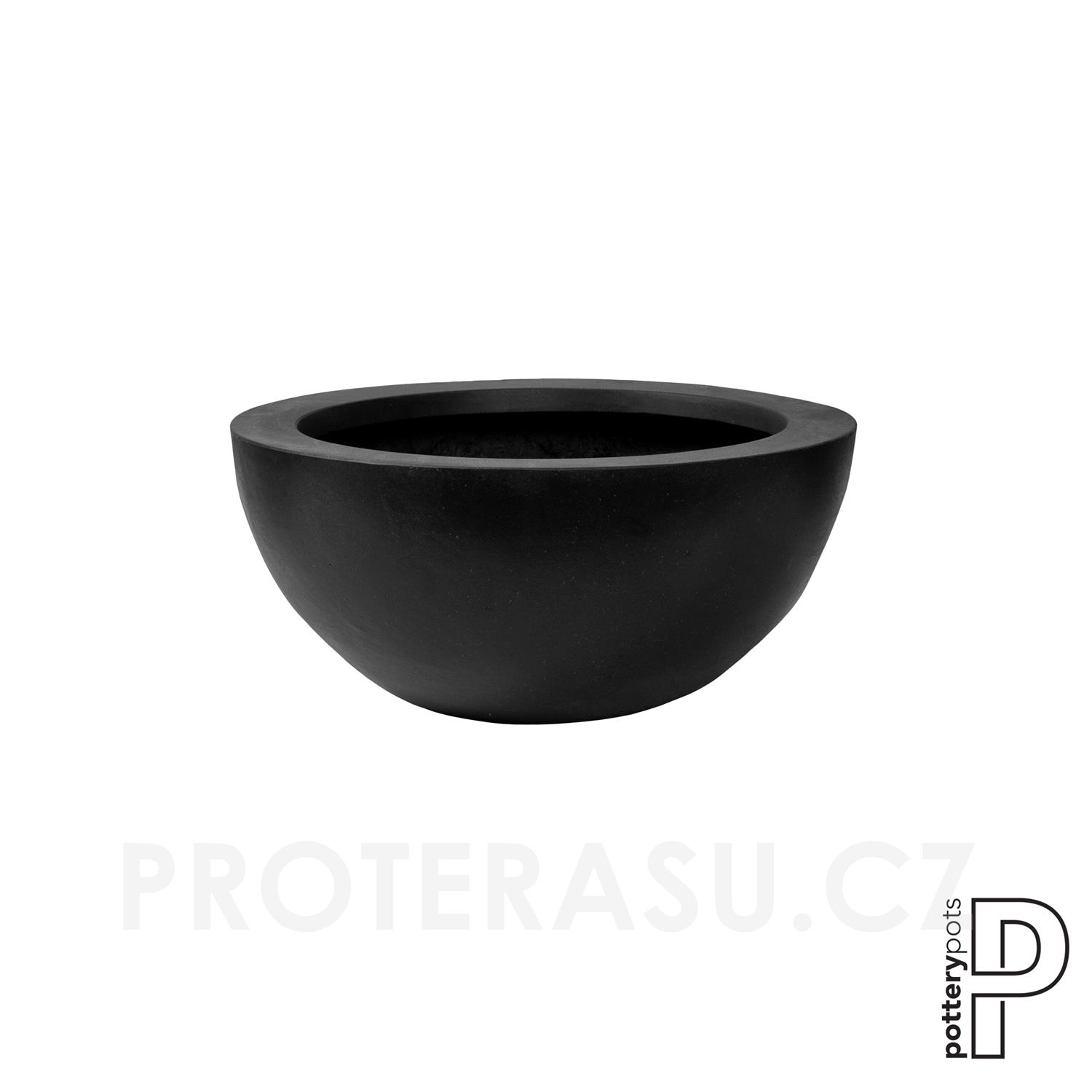 Venkovní květináč kulatý Vic Bowl S, Black (barva černá), kolekce Natural, kompozit Fiberstone, průměr 38,5 cm x v 18 cm, objem cca 7 l