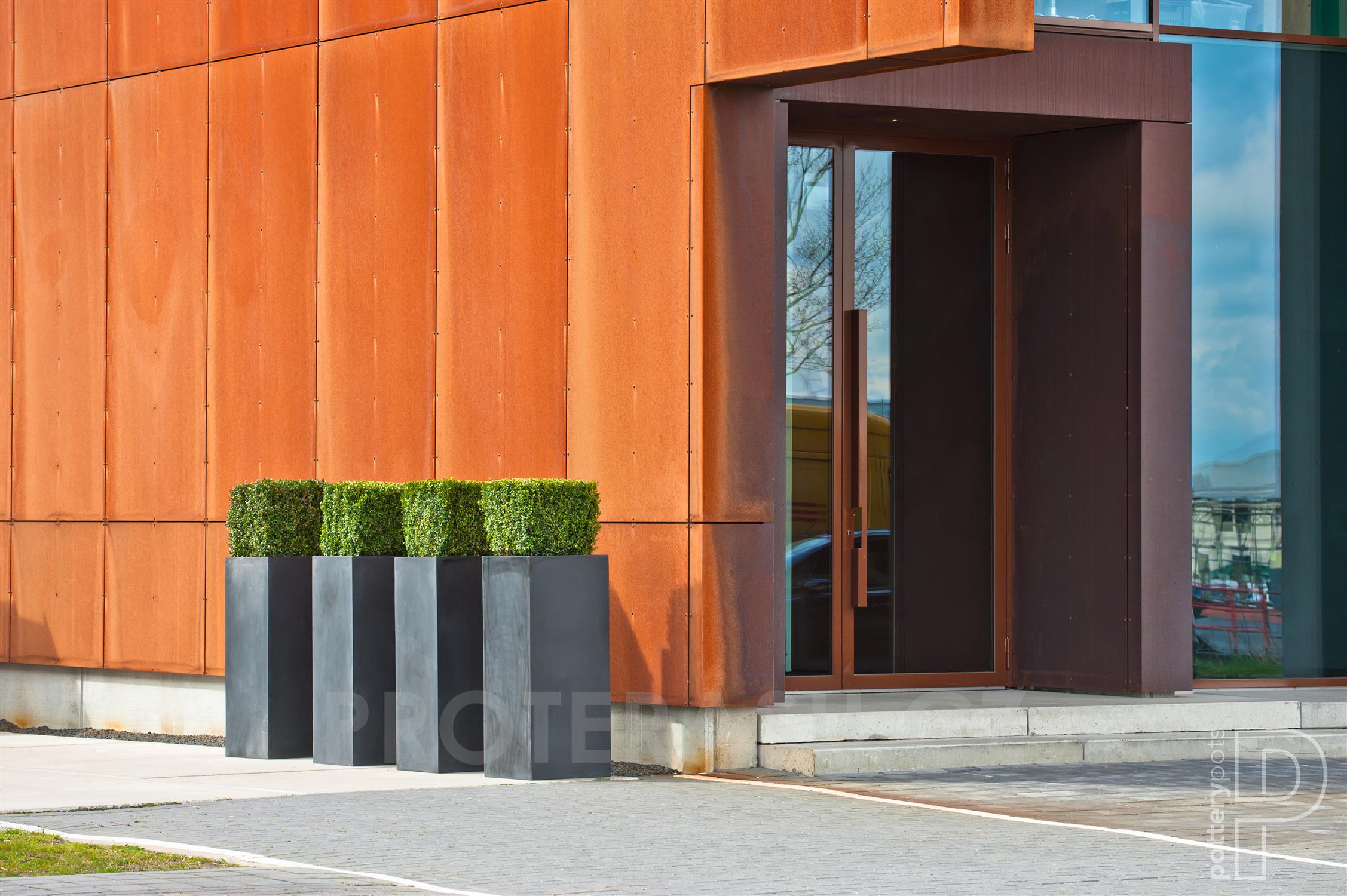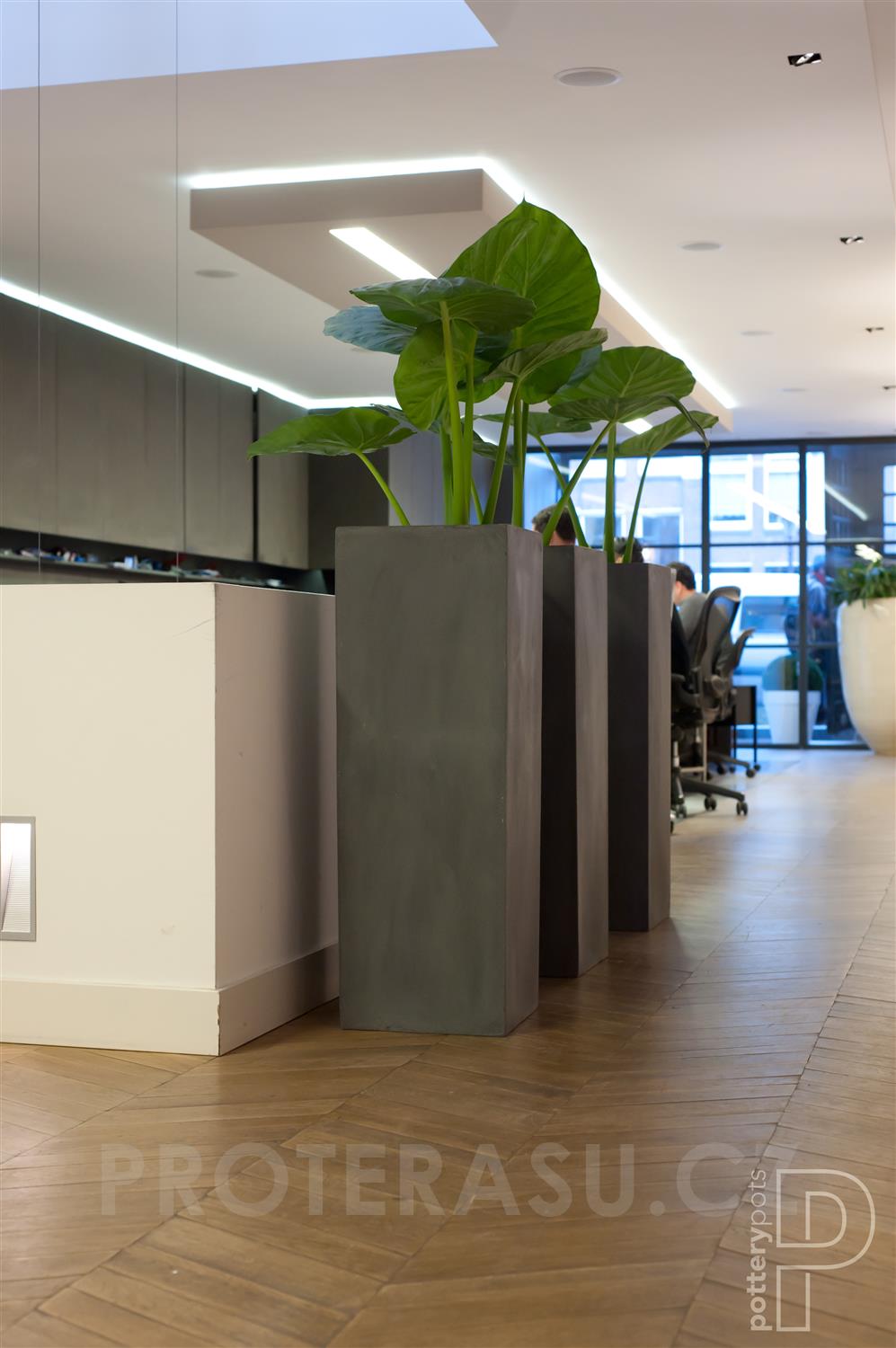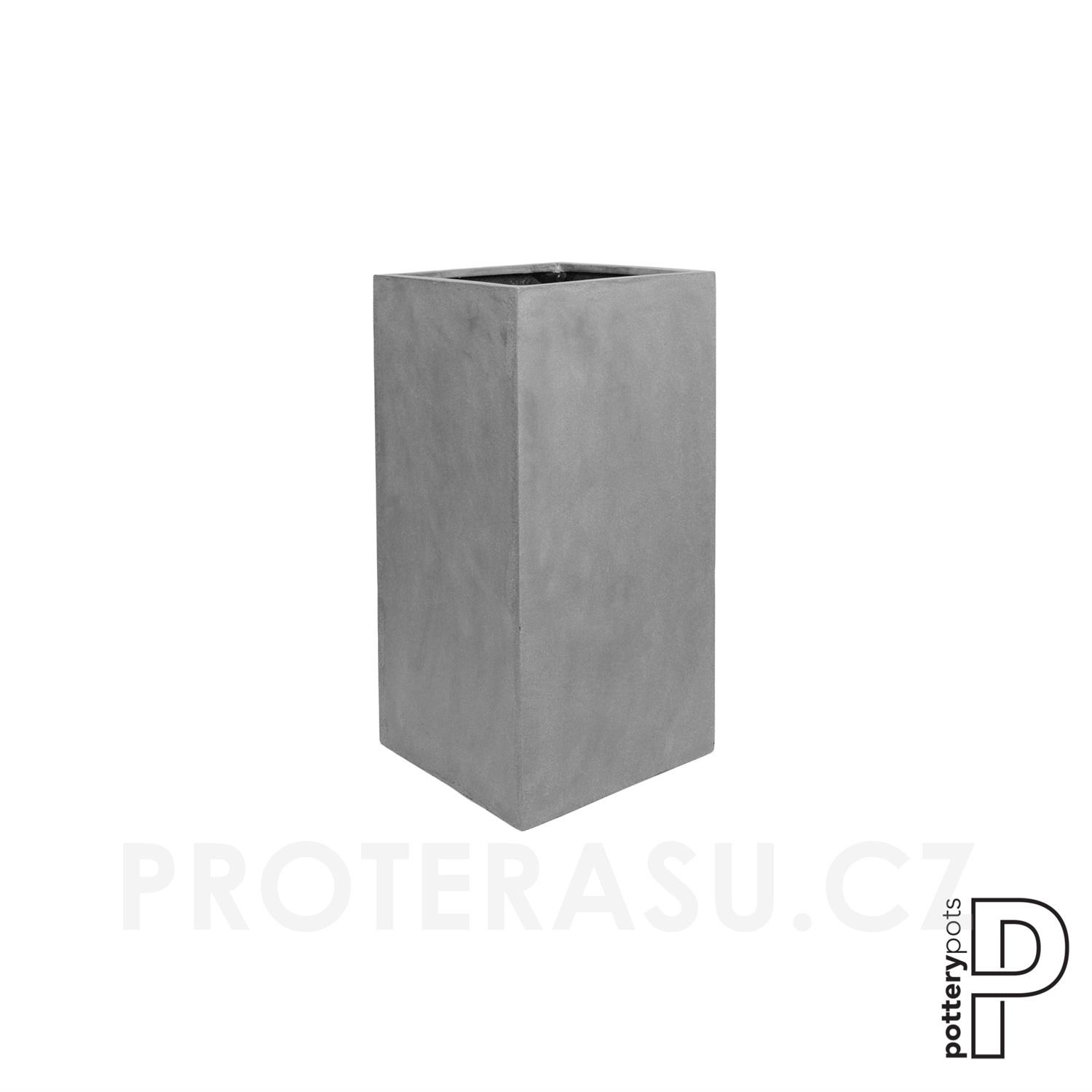 Venkovní květináč obdélníkový Bouvy L, Grey (barva šedá), kolekce Natural, kompozit Fiberstone, d 40 cm x š 40 cm x v 80 cm, objem cca 128 l