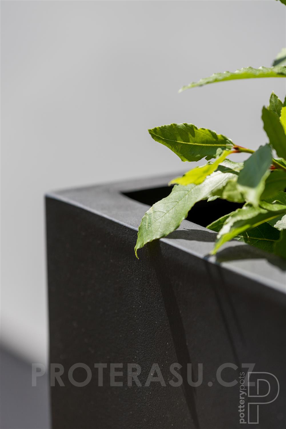 Venkovní květináč obdélníkový Bouvy XXL, Black (barva černá), kolekce Natural, kompozit Fiberstone, d 50 cm x š 50 cm x v 120 cm, objem cca 300 l
