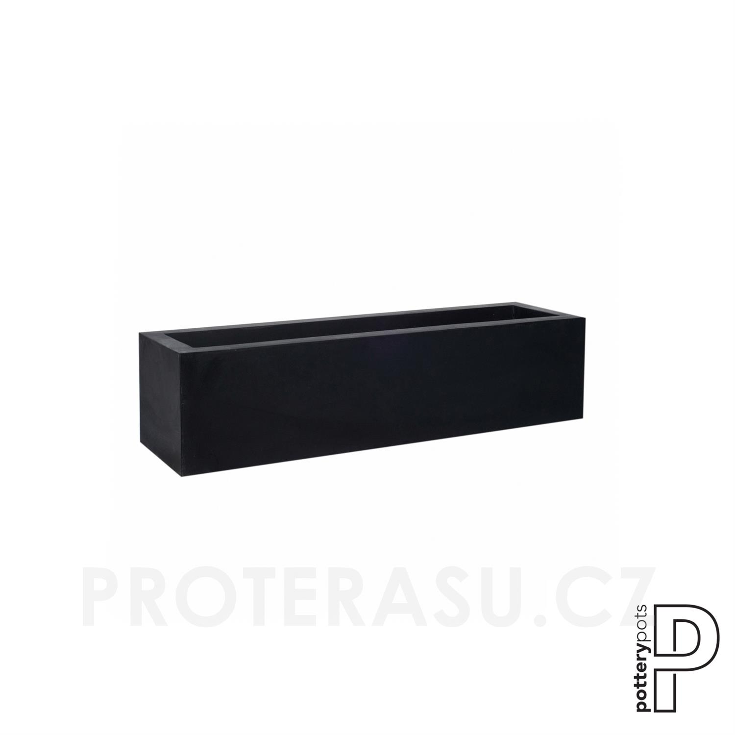 Venkovní květináč obdélníkový Jort Low S, Black (barva černá), kolekce Natural, kompozit Fiberstone, d 100 cm x š 30 cm x v 25 cm, objem cca 75 l
