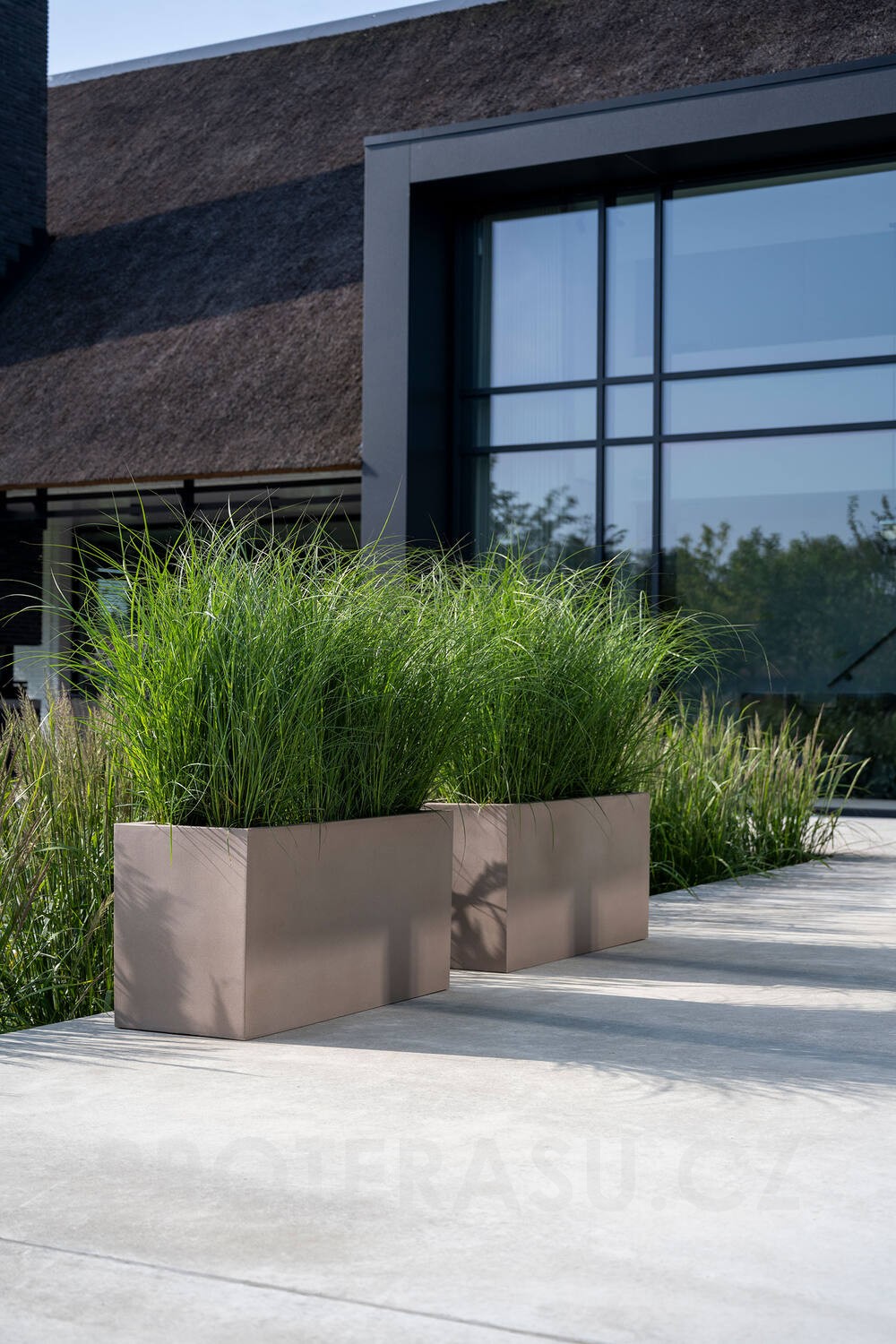 Venkovní květináč obdélníkový Jort M, Taupe (barva béžová taupe) kolekce Natural, kompozit Fiberstone, d 100 cm x š 40 cm x v 50 cm, objem cca 200 l