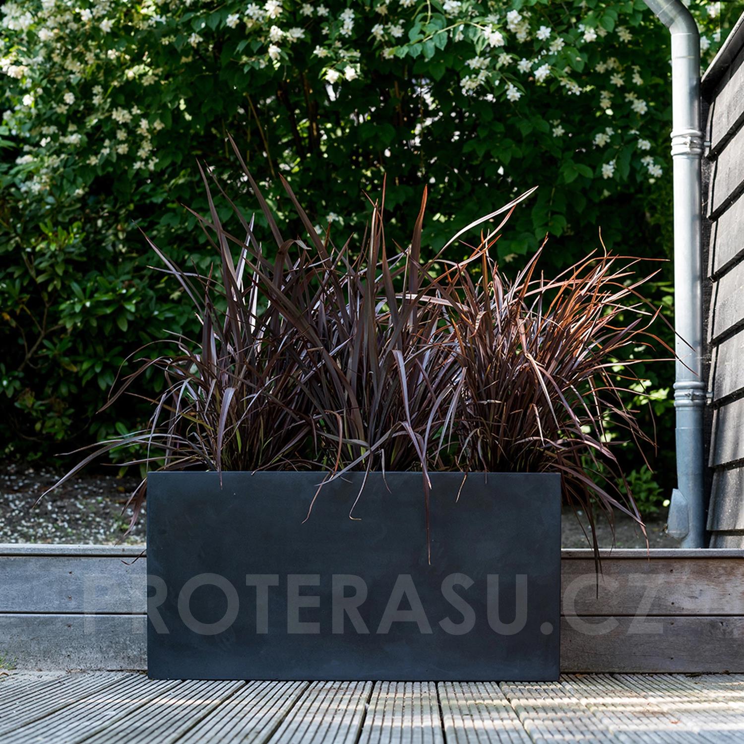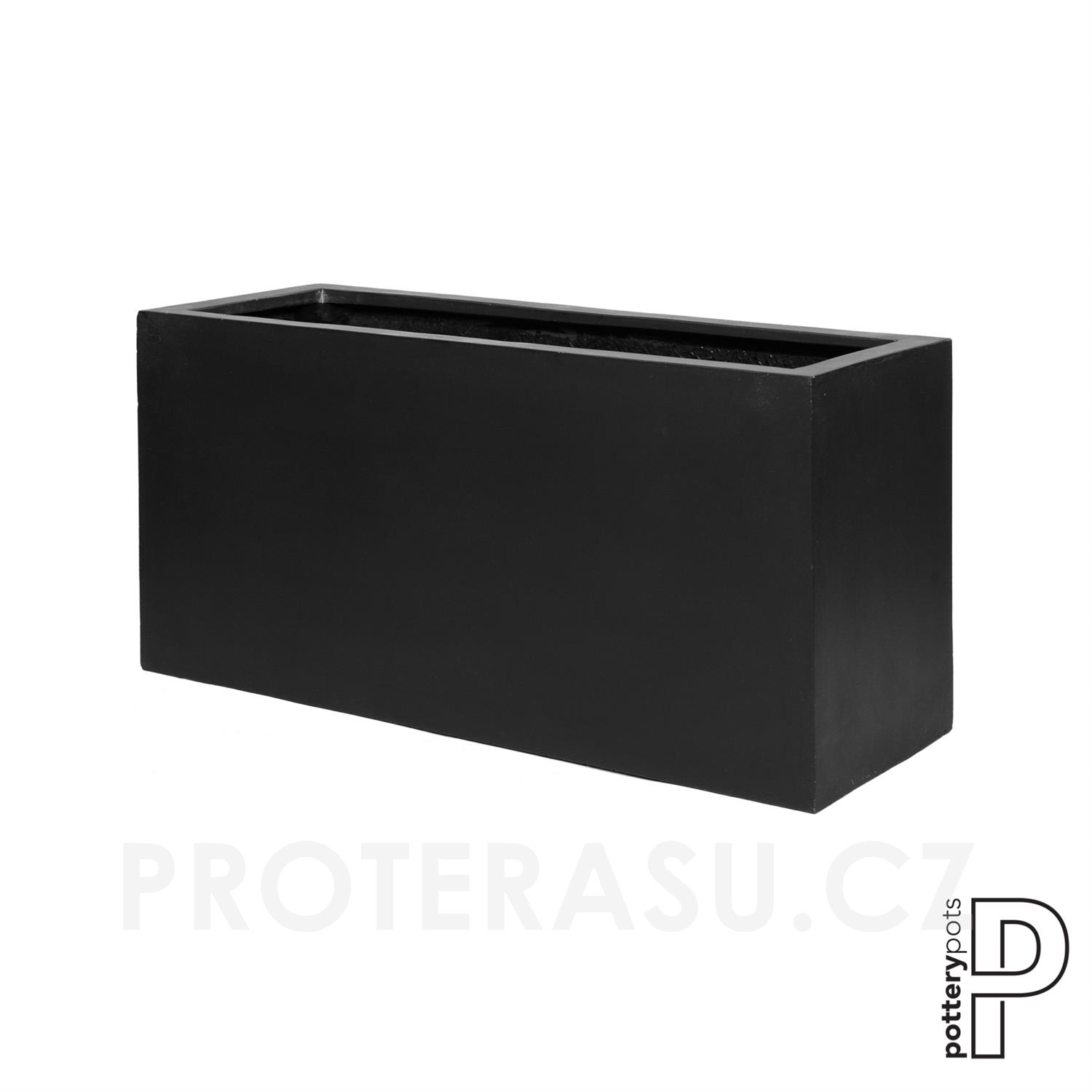 Venkovní květináč obdélníkový Jort M, Black (barva černá), kolekce Natural, kompozit Fiberstone, d 100 cm x š 40 cm x v 50 cm, objem cca 200 l