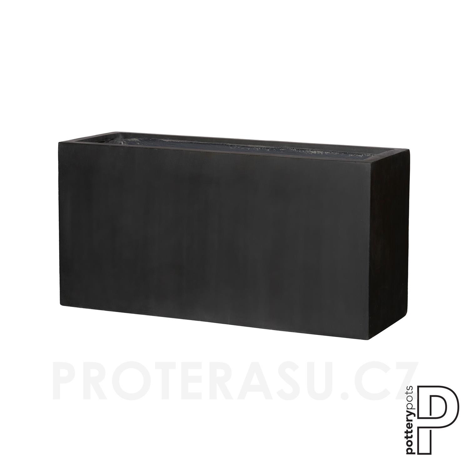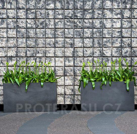 Venkovní květináč obdélníkový Jort S, Charcoal cement (barva tmavě šedá), kolekce Cement, materiál Ficonstone, d 80 cm x š 30 cm x v 40 cm