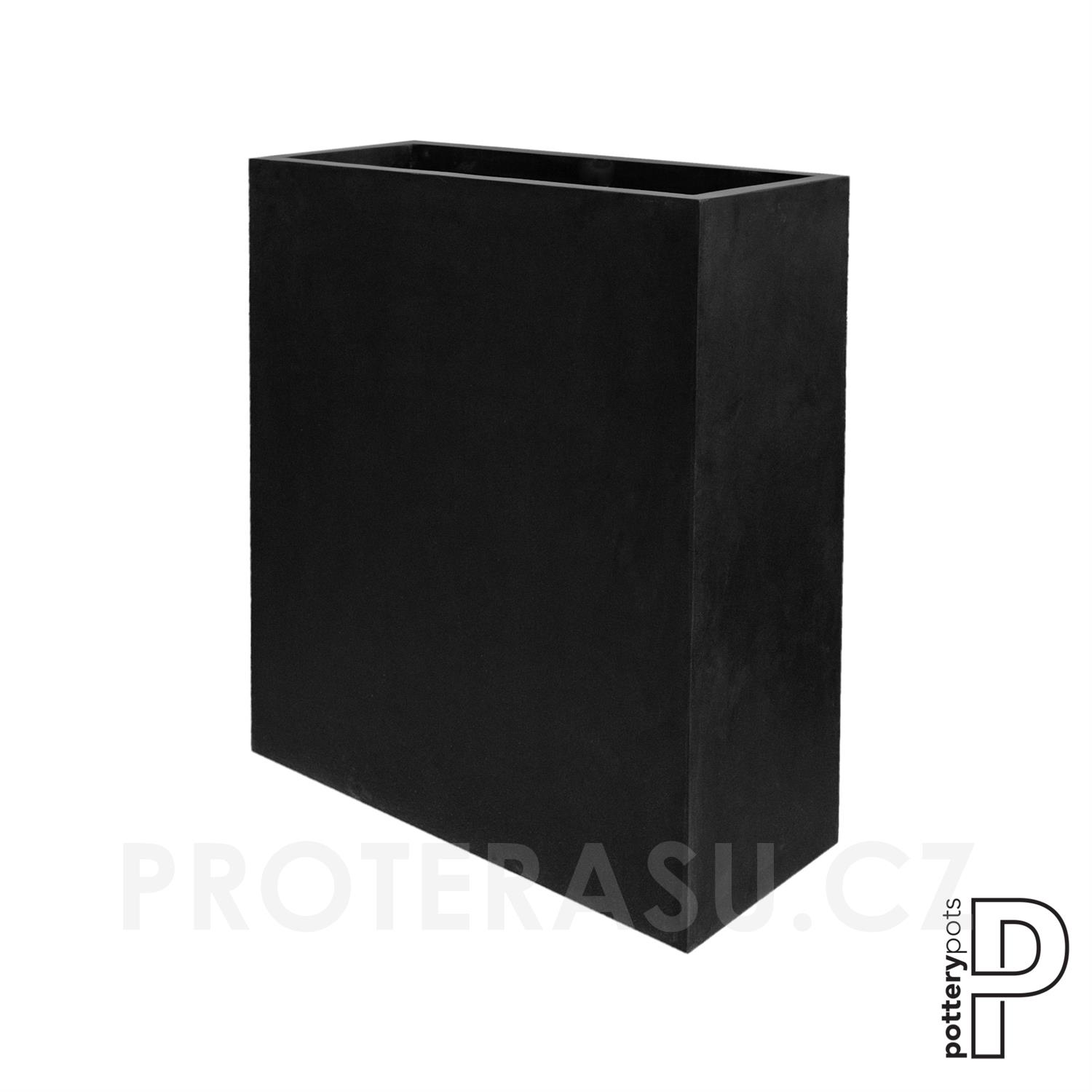 Venkovní květináč obdélníkový Jort Slim high XL, Black (barva černá), kolekce Natural, kompozit Fiberstone, d 91 cm x š 36 cm x v 102 cm, objem cca 334 l