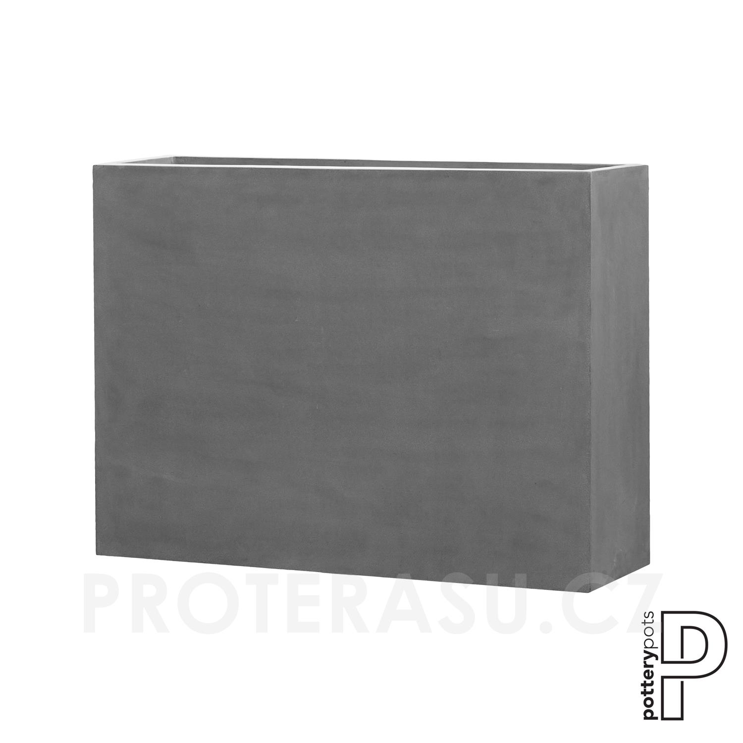 Venkovní květináč obdélníkový Jort Slim L, Grey (barva šedá), kolekce Natural, kompozit Fiberstone, d 124 cm x š 33,5 cm x v 90 cm, objem cca 373 l