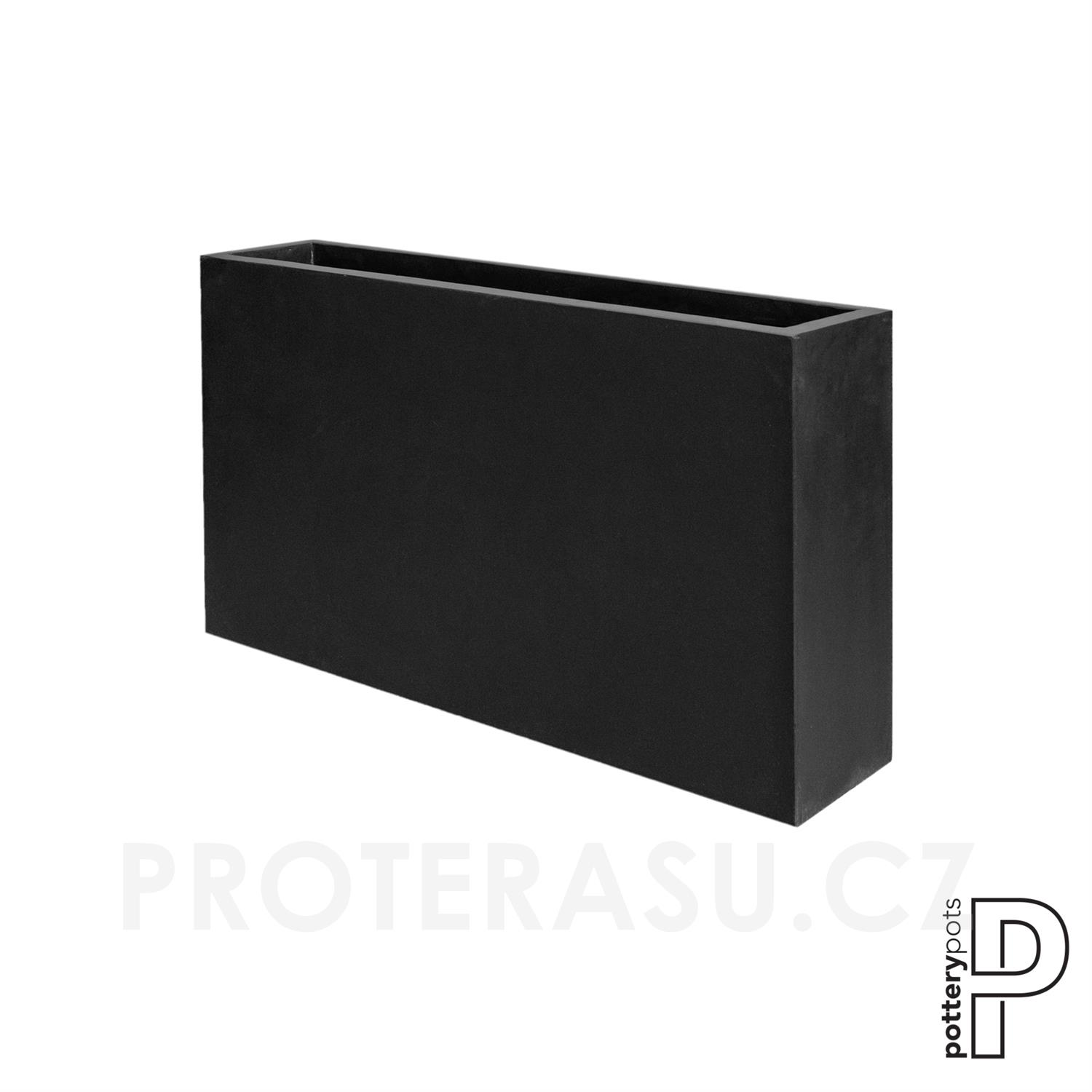 Venkovní květináč obdélníkový Jort Slim S, Black (barva černá), kolekce Natural, kompozit Fiberstone, d 91 cm x š 20 cm x v 50 cm, objem cca 91 l