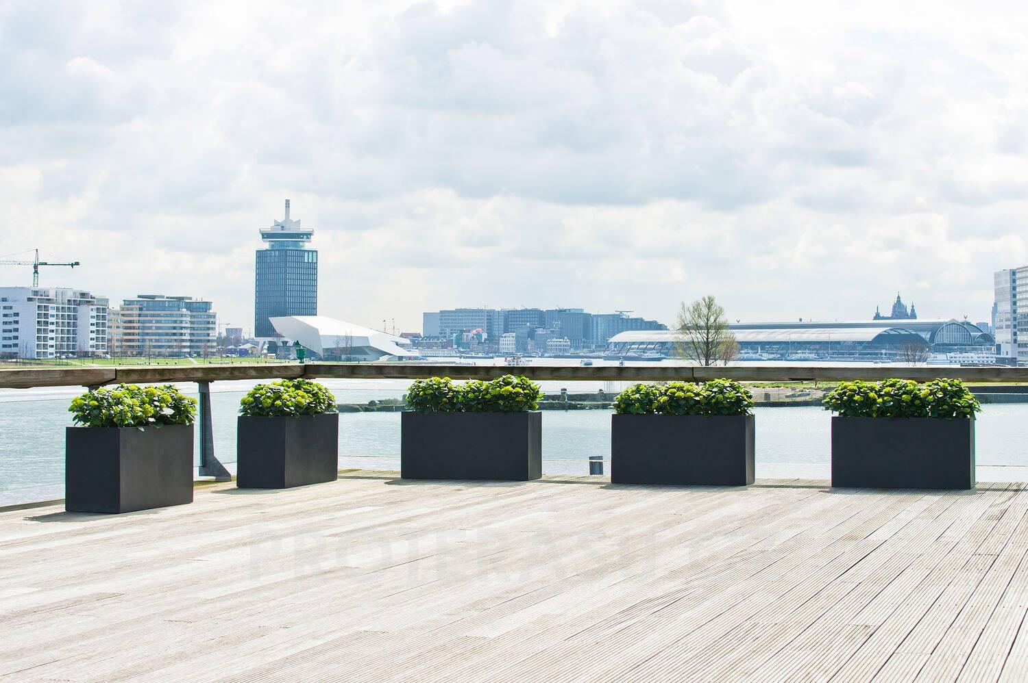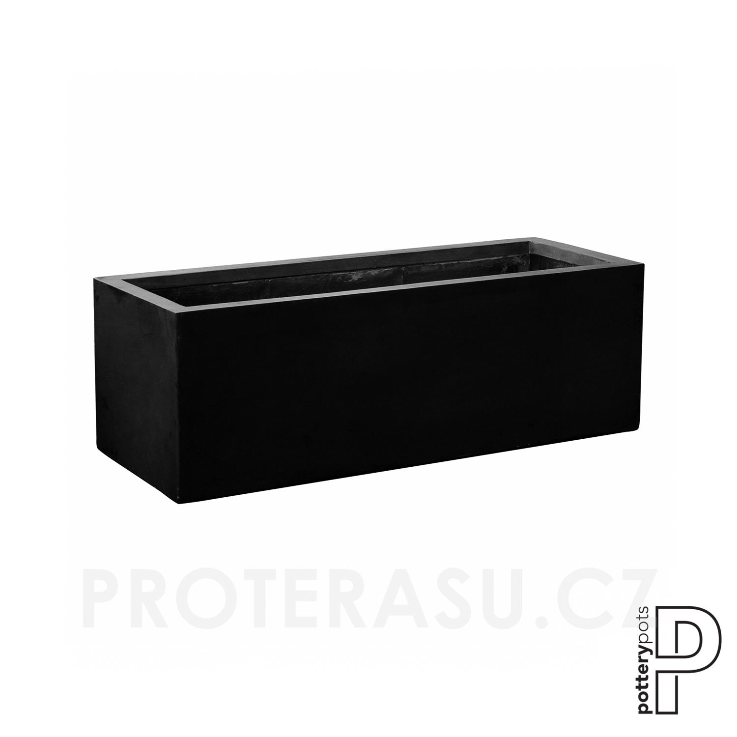 Venkovní květináč obdélníkový Jumbo Jort M, Black (barva černá), kolekce Natural, kompozit Fiberstone, d 150 cm x š 60 cm x v 50 cm, objem cca 450 l