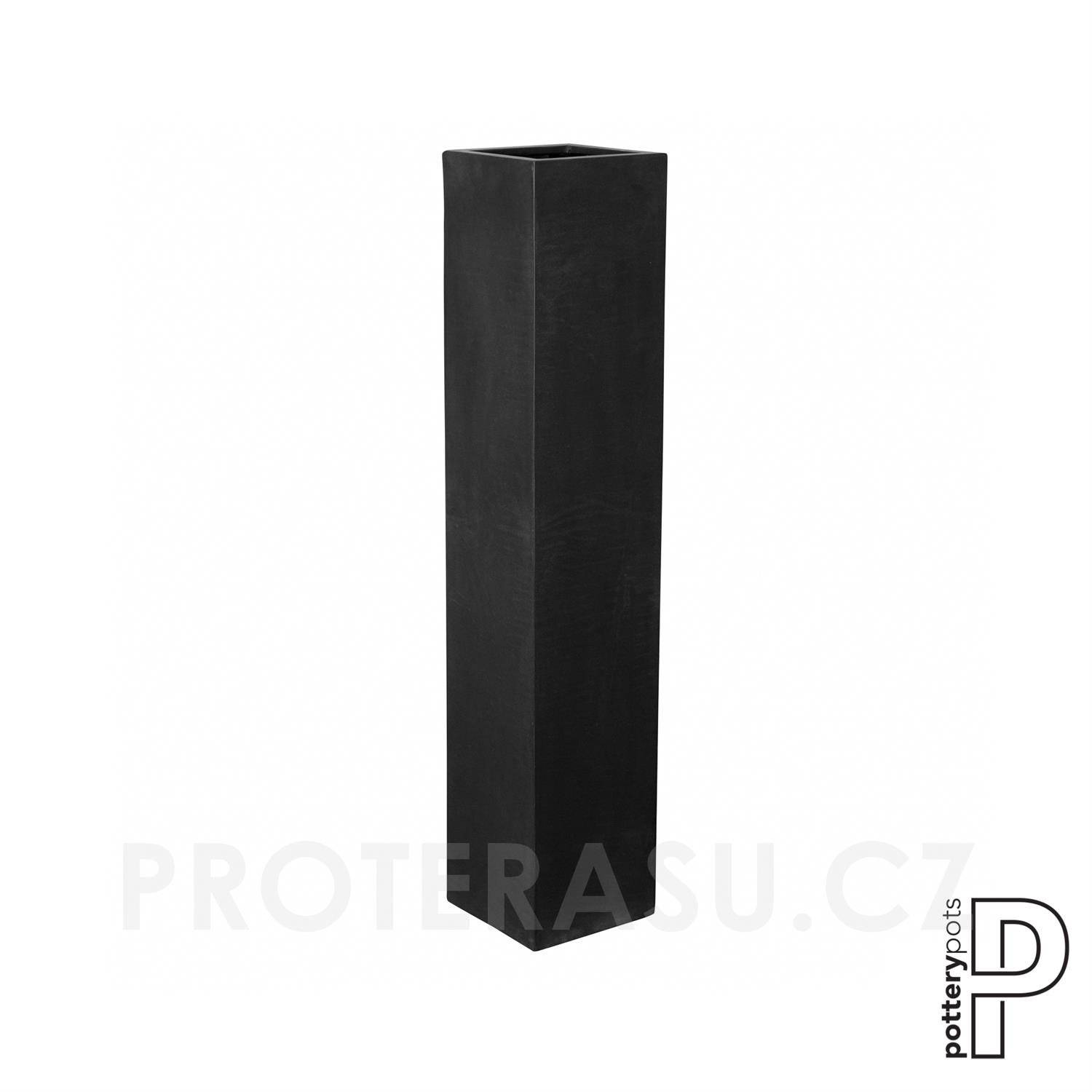 Venkovní květináč obdélníkový Yenn M, Black (barva černá), kolekce Natural, kompozit Fiberstone, d 25 cm x š 25 cm x v 125 cm, objem cca 78 l