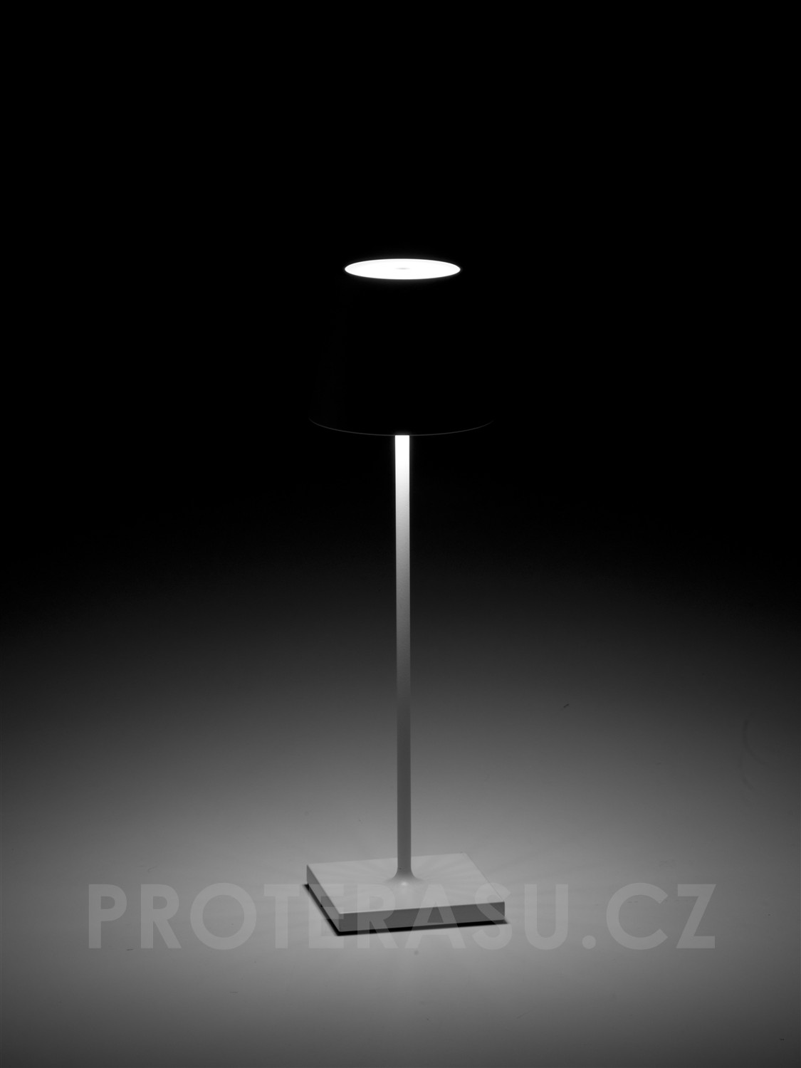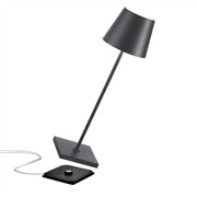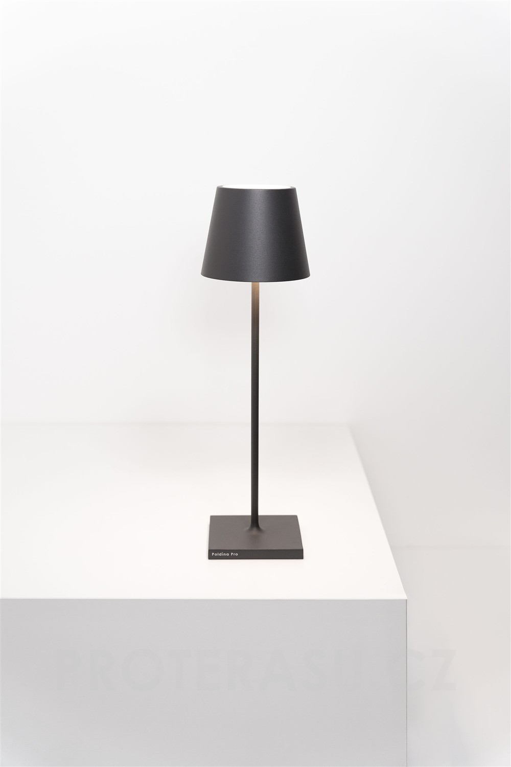 Stolní venkovní LED lampička Poldina Pro, Zafferano, výška 38 cm x průměr 11 cm, hliník tmavě šedý mat (dark grey), vč. nabíječky