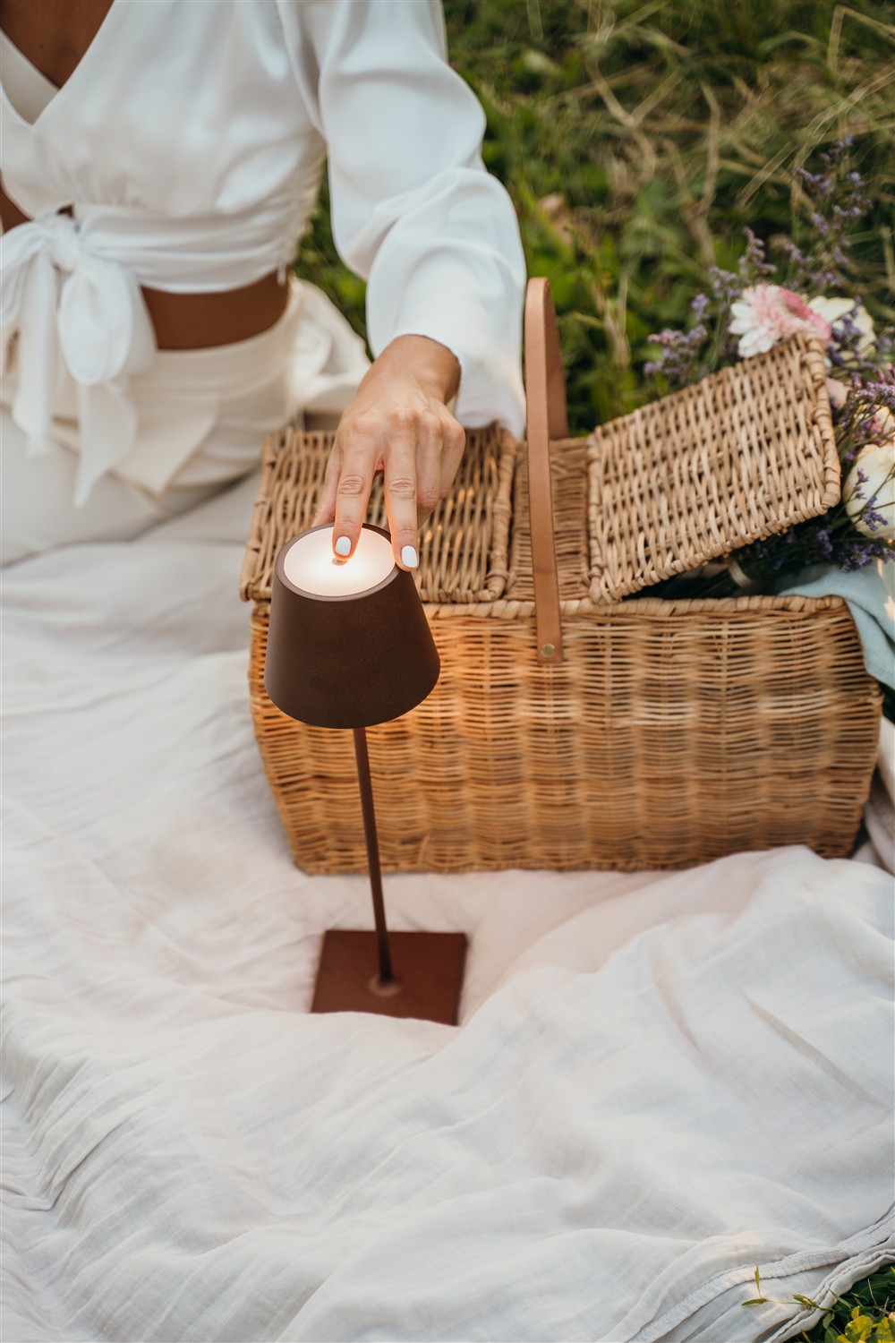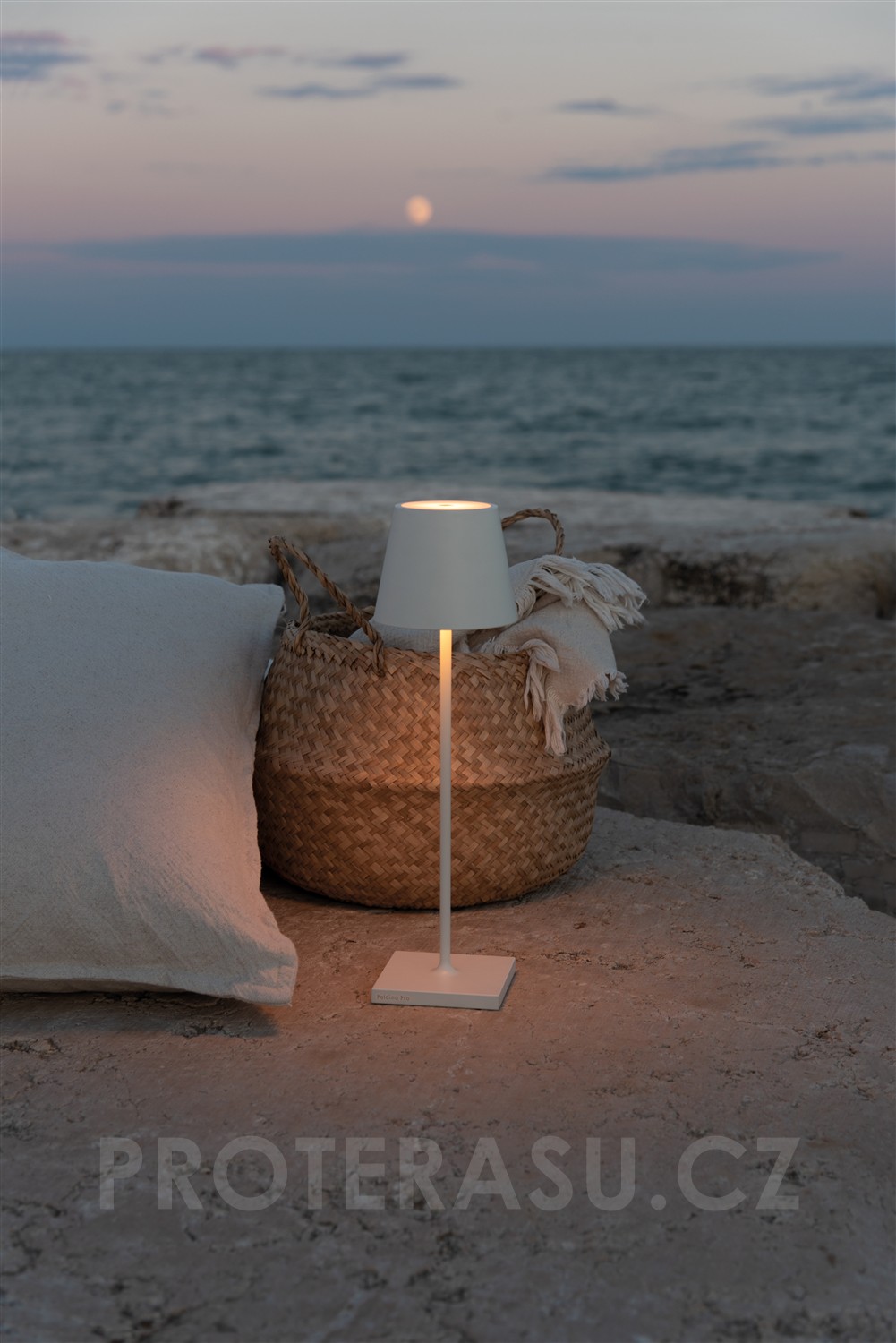 Stolní venkovní LED lampička Poldina Pro, Zafferano, výška 38 cm x průměr 11 cm, hliník béžový (matt sand) vč. nabíječky