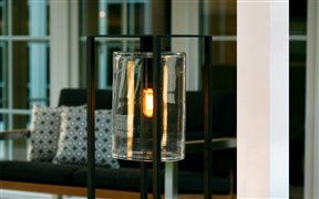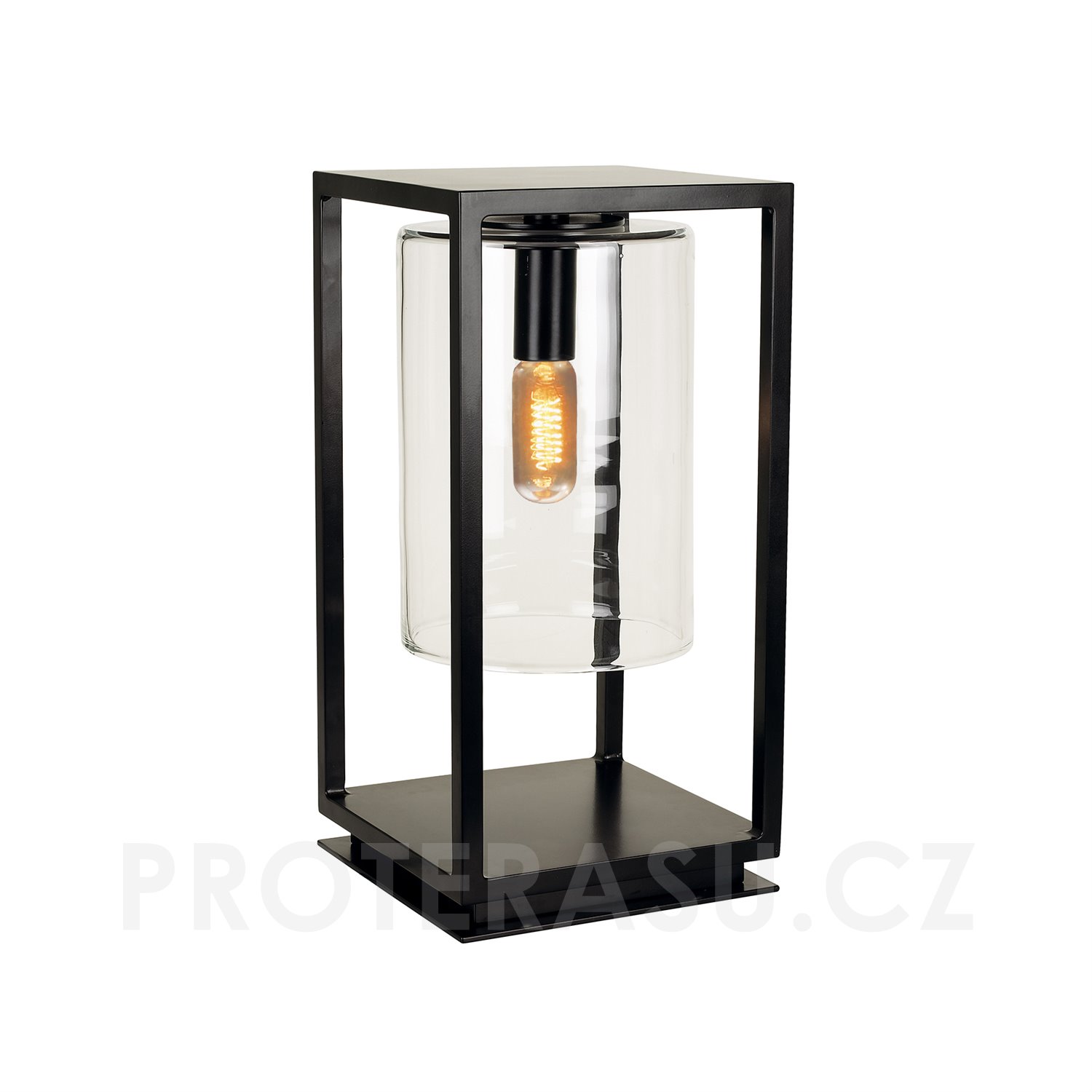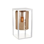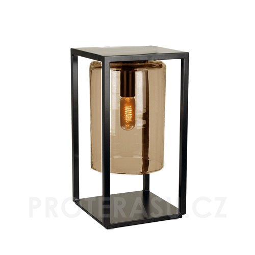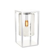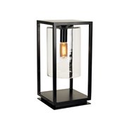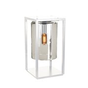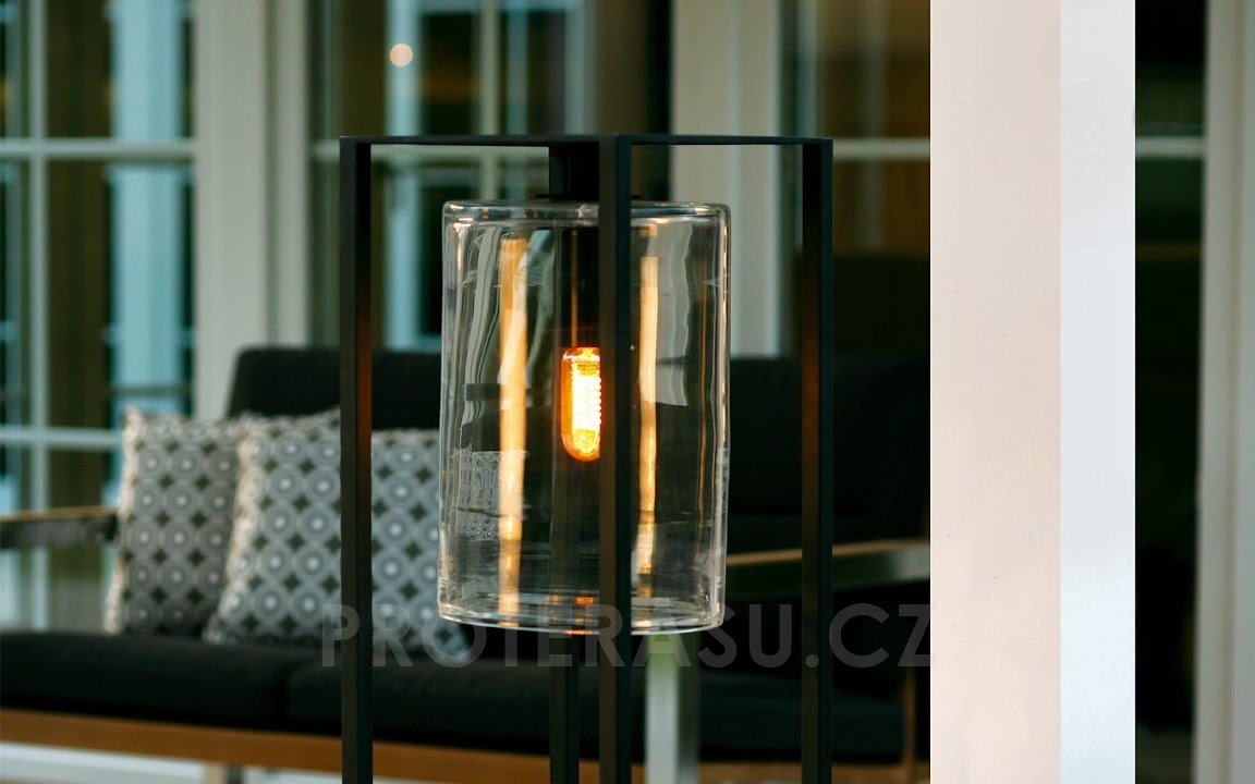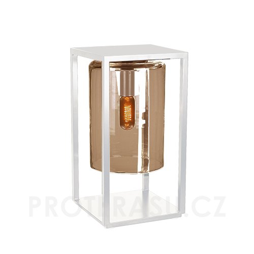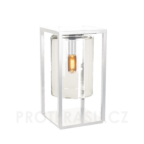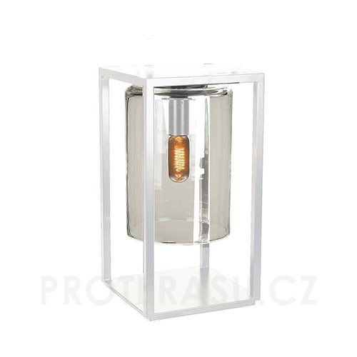 Konstrukce: lakovaný hliník (bílá nebo černá), sklo (čiré, kouřové, jantarové). Součástí venkovního světla je dekorativní LED vláknová žárovka. Parametry: přívod 220V/E27, světelný tok 300Im, teplota světla 2200K, krytí IP43. Bezpečnost kategorie 1. Rozměry: 30x30 cm, výška 60 cm.
