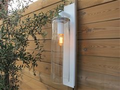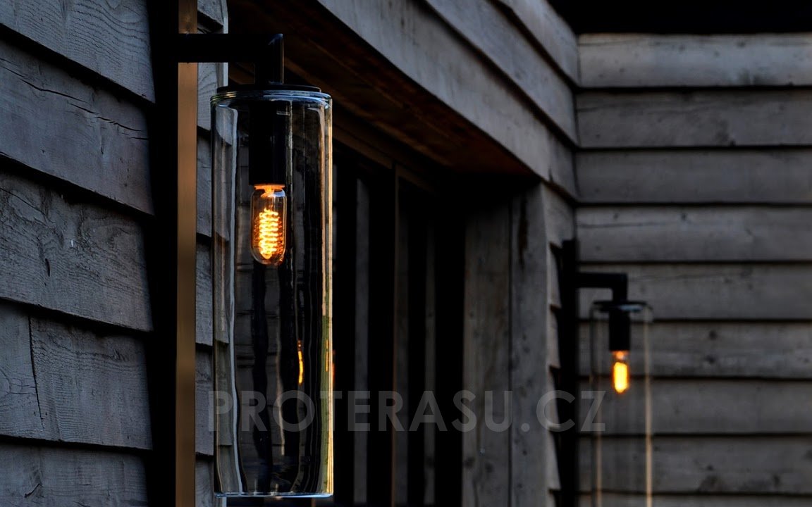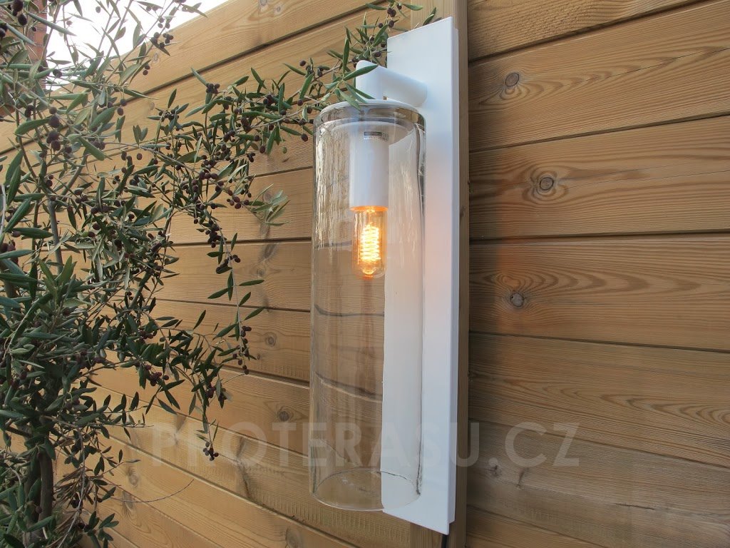 Konstrukce: lakovaný hliník (bílá nebo černá), sklo (čiré, kouřové, jantarové). Součástí venkovního světla je dekorativní LED vláknová žárovka. Parametry: krytí IP43, přívod 220V/E27, světelný tok 300Im, teplota světla 2200K. Bezpečnost kategorie 1. Rozměry: průměr 15 cm, hloubka 20 cm, výška 72 cm.