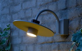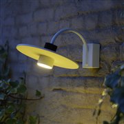 Zahradní lampa je z lakovaného hliníku, který je nanášen metodou práškování. Nástěnná lampa je navržena v několika barevných provedeních. Součástí designového světla je žárovka: příkon 5,8W, přívod 100-240V, 50-60-Hz, světelný tok 540Im, barva světla 3000K. Stupeň ochrany IP65. Bezpečnost kategorie 1. Rozměry: průměr 25 cm, 34x16 cm, výška v místě upevnění 10 cm.