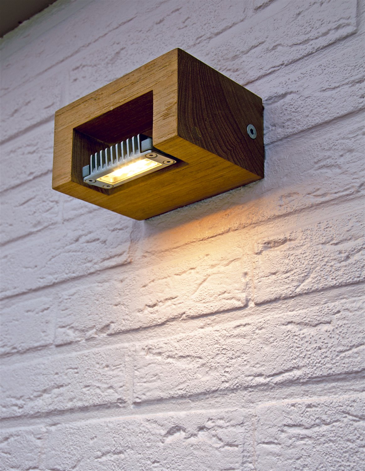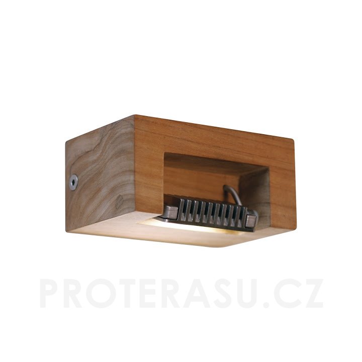 Konstrukce: teakové dřevo, stínidlo: nerezová ocel. Nastavitelný úhel stínidla: 90°. Nástěnná lampa je vhodná i do interiéru. Součástí designového světla je LED žárovka: příkon 5W, 350mA, přívod 100-240V, 50/60Hz, světelný tok 350Im, barva světla 2700K. Stupeň ochrany IP65. Bezpečnost kategorie 1. Rozměry: 14x10x7 cm.