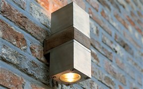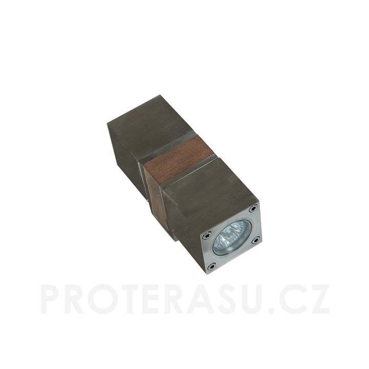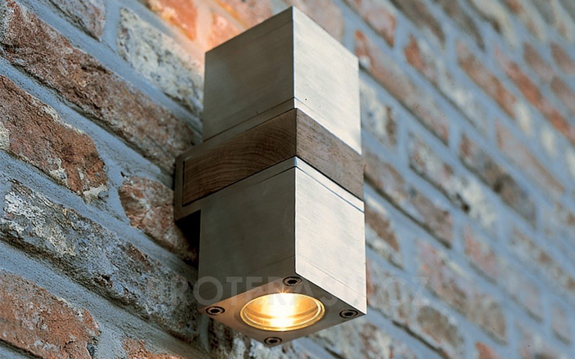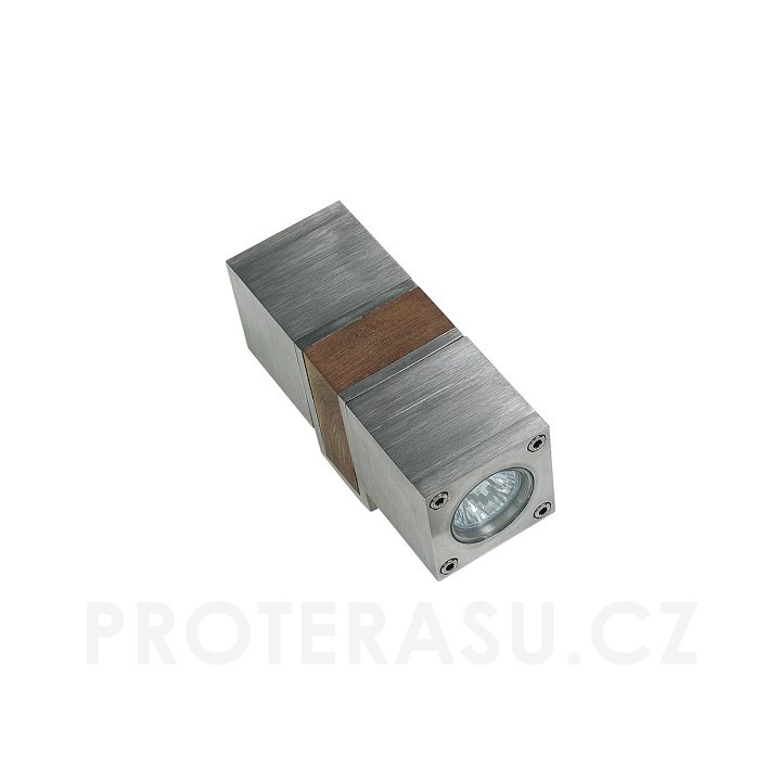 Venkovní nástěnné osvětlení má dvě světla v designu reflektorů. Tělo osvětlení je z teakového dřeva. Podstavec, reflektory a strany nosného těla jsou z elektrochemicky čištěné nerezové oceli. Lampu je vhodné umístit také do interiéru. K venkovnímu osvětlení je nutné doobjednat dvě žárovky s plochou optikou. Parametry doporučených žárovek: LED, příkon 5W, přívod 220V, patice GU10. Stupeň ochrany IP55. Bezpečnost kategorie 1. Rozměry: 7,5x10x20 cm.