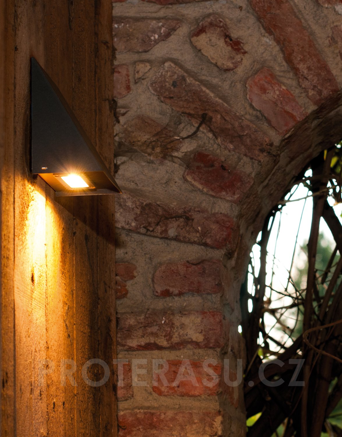 Zahradní nástěnné světlo je vyrobeno z pozinkovaného kovu. Součástí vysoce odolného venkovního světla je žárovka: příkon 5W, 350mA, přívod 100-240V, 50-60Hz, světelný tok 250Im. Stupeň ochrany IP55. Bezpečnost kategorie 1. Rozměry: 12x7x12 cm.